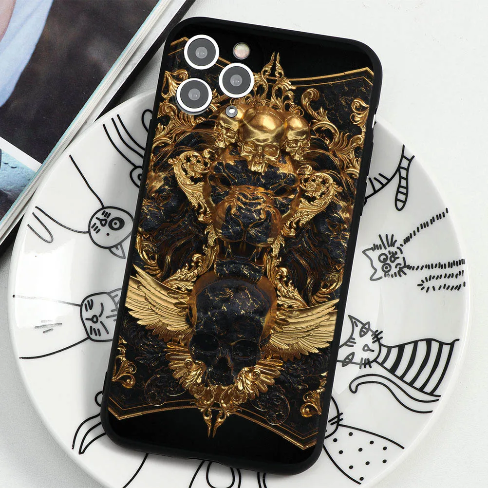Череп скелет прохладный черный чехол для телефона iPhone XS 11 12 Mini Pro Max X XR SE 2020 для iphone 7 Plus 6 6S 7 8 Plus 5 TPU чехол