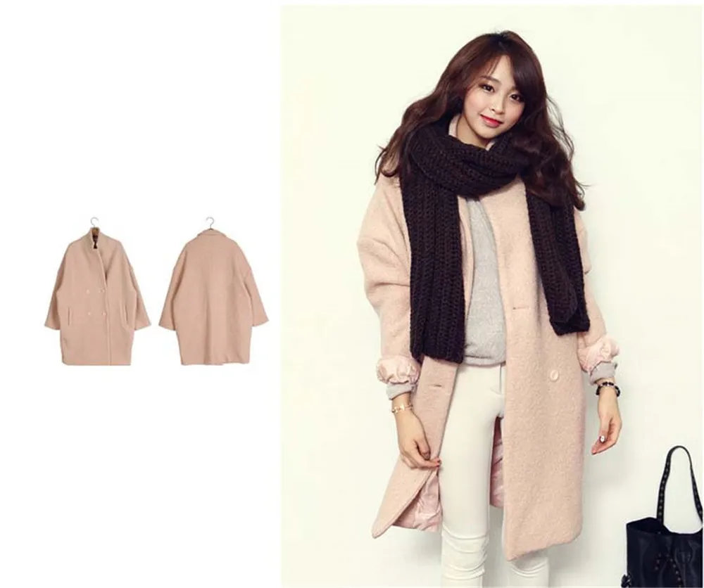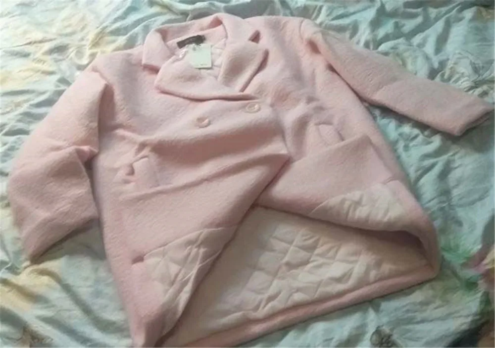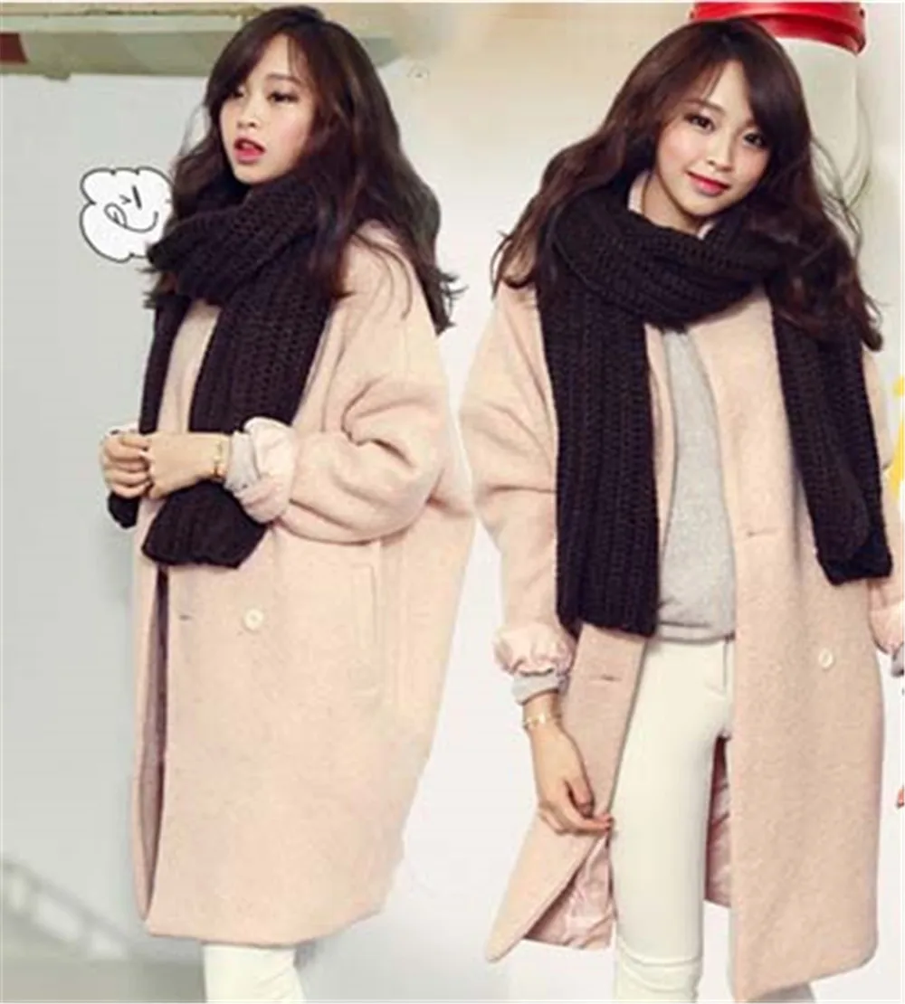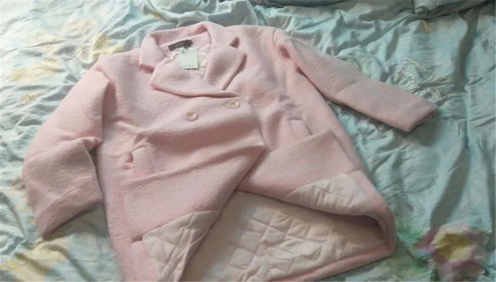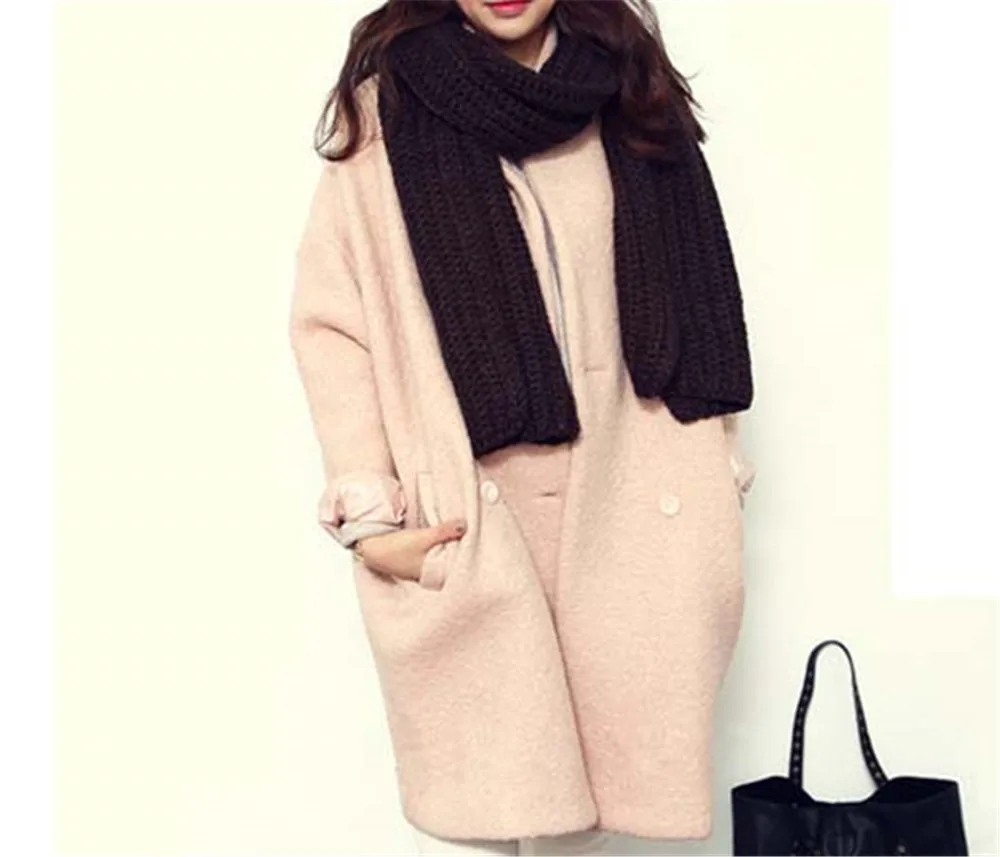 Зимняя женская шерстяная куртка размера плюс, свободная однотонная твидовая куртка с длинным рукавом и отворотом, теплая хлопковая куртка