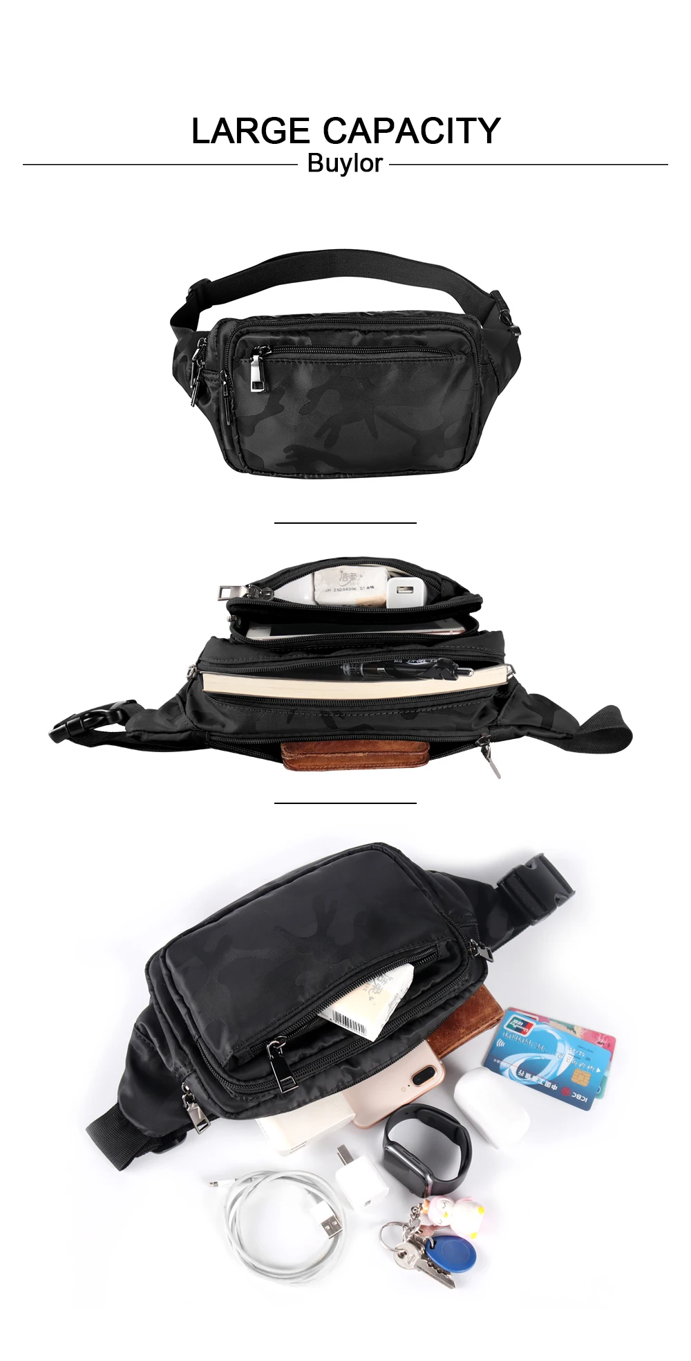 Buylor поясная Для мужчин Спорт Пояс сумка, дорожная сумка-мешок камуфляж поясная сумка из натуральной кожи, в стиле унисекс, WaterproofPhone Чехол-бумажник