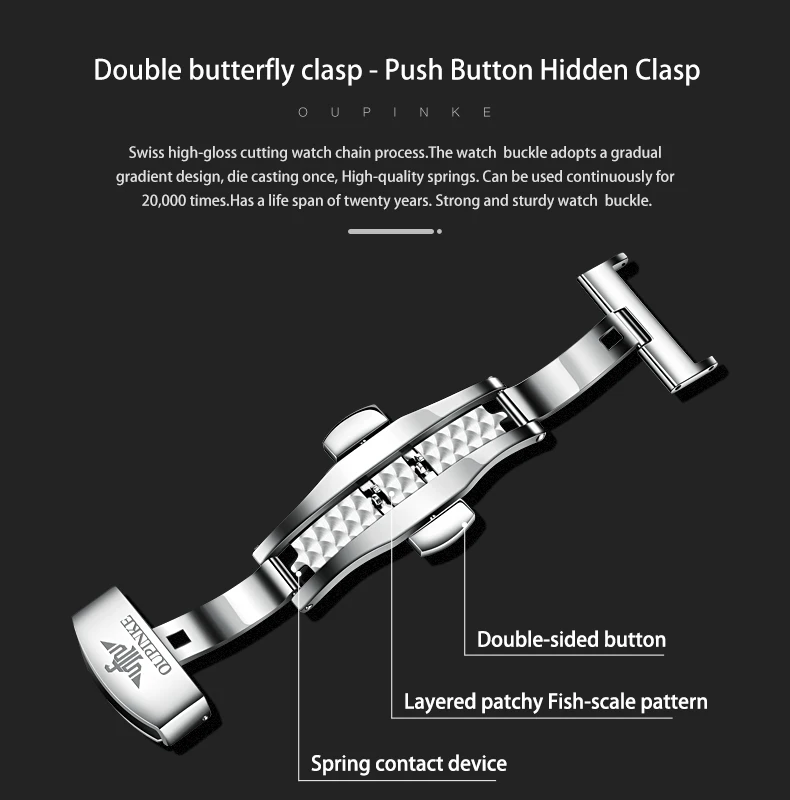 1. OUPINKE-это швейцарский бренд часов с глубокими корнями в Швейцарии. Все движения принимают импортные движения. Дизайнер часов является известным экспертом часов из Швейцарии и Германии. 2. Срок службы бизнеса: «Управление целостностью». 3. Сочетает в себе моду, элегантность и уникальность. 4. Придерживайтесь принципа «истина, качество, клиент в первую очередь». 5. Быстрая логистика, лучшее обслуживание и лучшее качество являются основой нашего бренда.