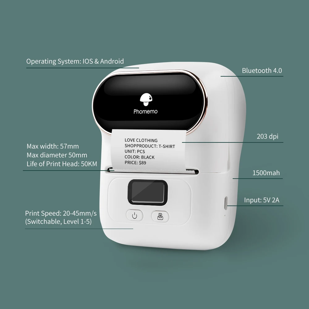 ✔Экономьте деньги и время --- термопринтер-технология термопечати устраняет необходимость в дорогих чернилах или тонере, после того, как он будет отредактирован в телефоне, этикетка будет напечатана немедленно.