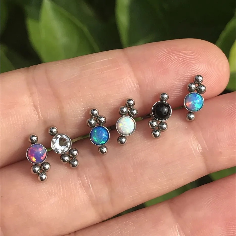 1 шт. кластер из нержавеющей стали Опал внутренняя нить Лабрет кольцо для губ 16 г хрящ козелка спирали Daith серьга для пирсинга уха для женщин