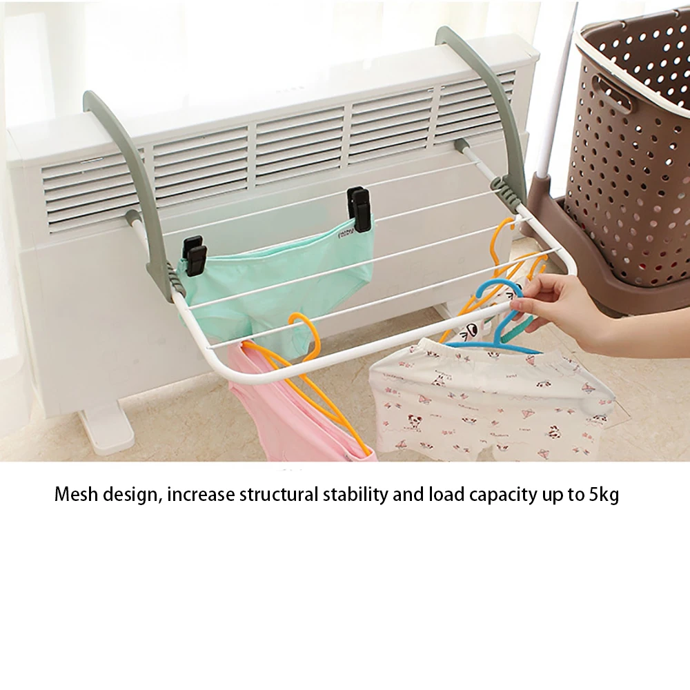 Сушилка изготовлена из высокотемпературного пластика и нержавеющей стали, выдерживает температуру до 70 градусов Цельсия. Таким образом, сушилка также может быть установлена на радиатор, чтобы высушить вашу ткань быстро или под солнечным светом в течение длительного времени.