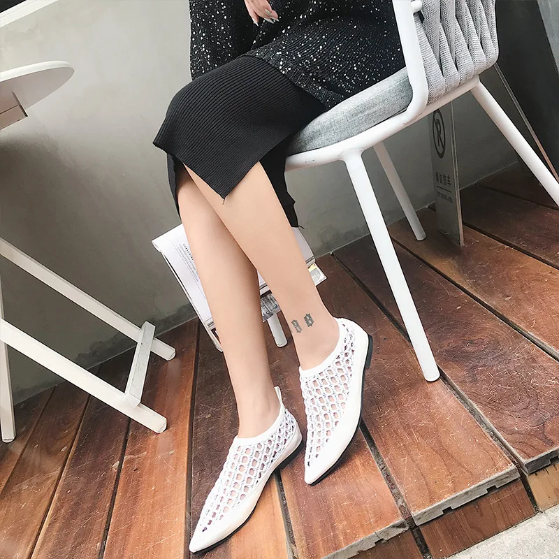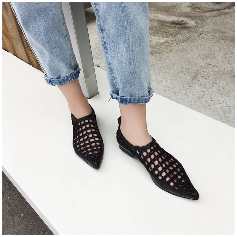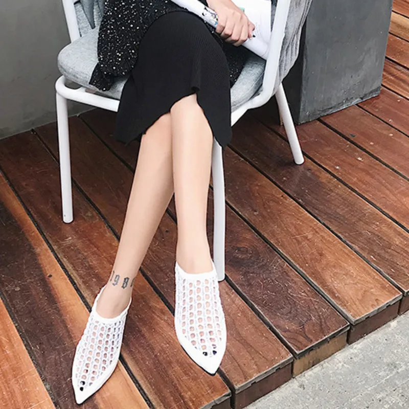 Женские модные туфли без задника на плоской подошве украшенные жемчугом и мехом