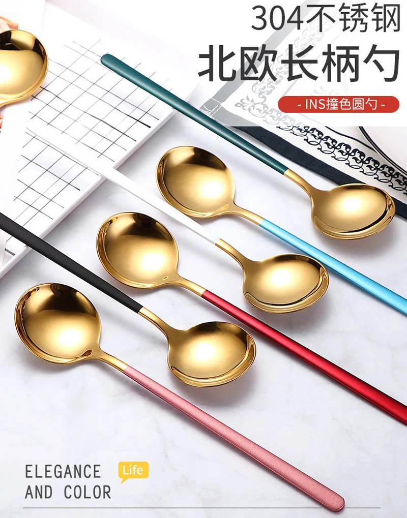 Набор ложек из нержавеющей стали 304 Цвета: золотой/белый/черный/красный/розовый/синий/зеленый 3 шт./компл.