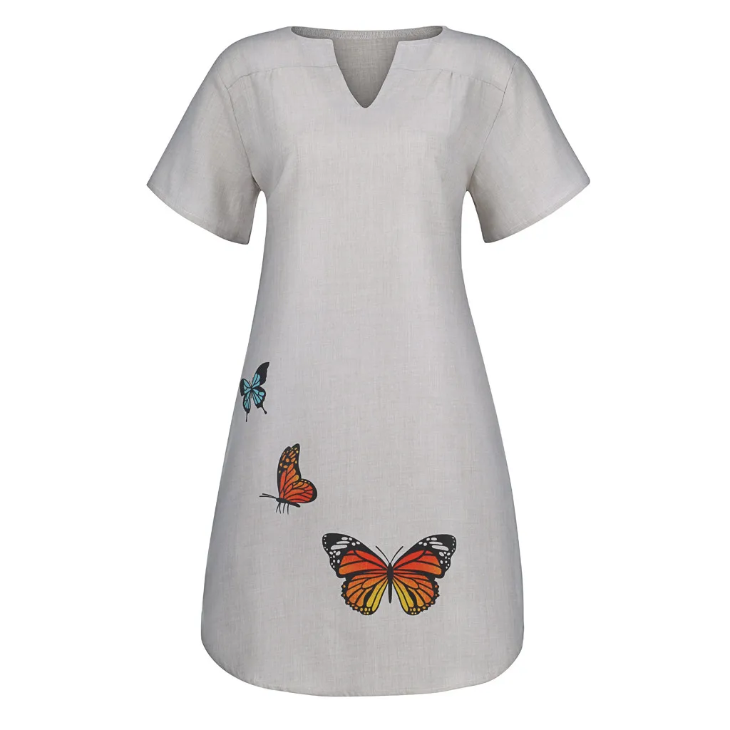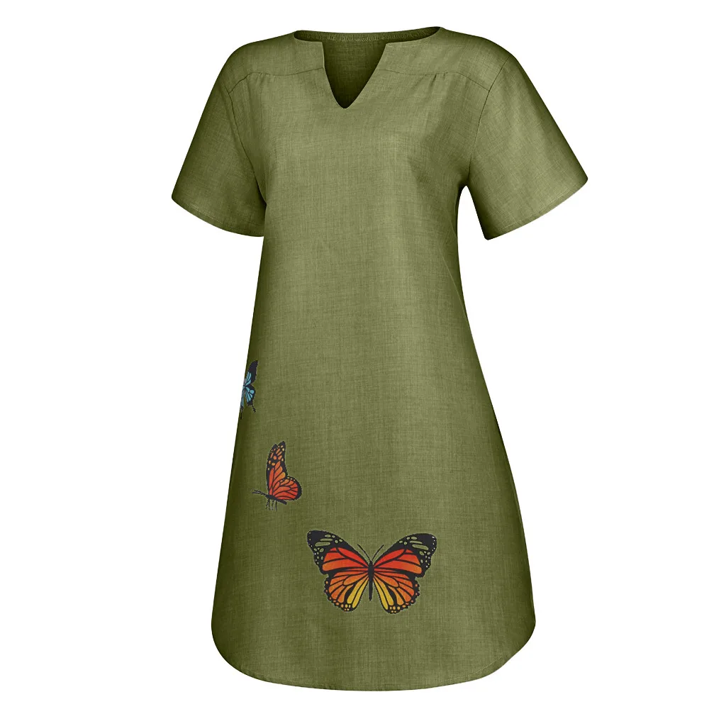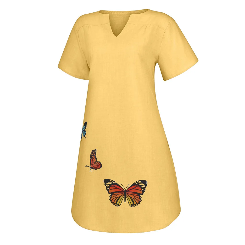Женское платье свободного покроя размера плюс с v-образным вырезом и принтом бабочки с коротким рукавом