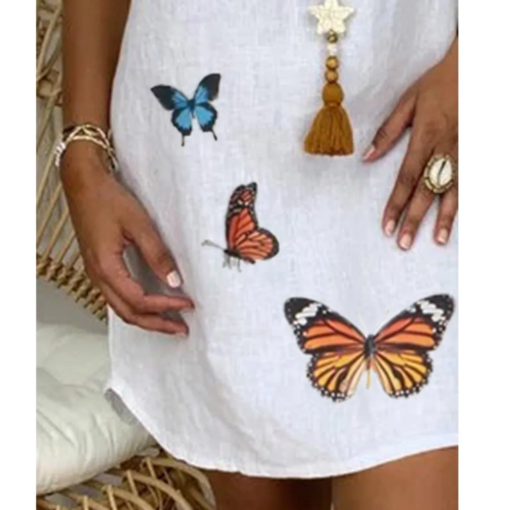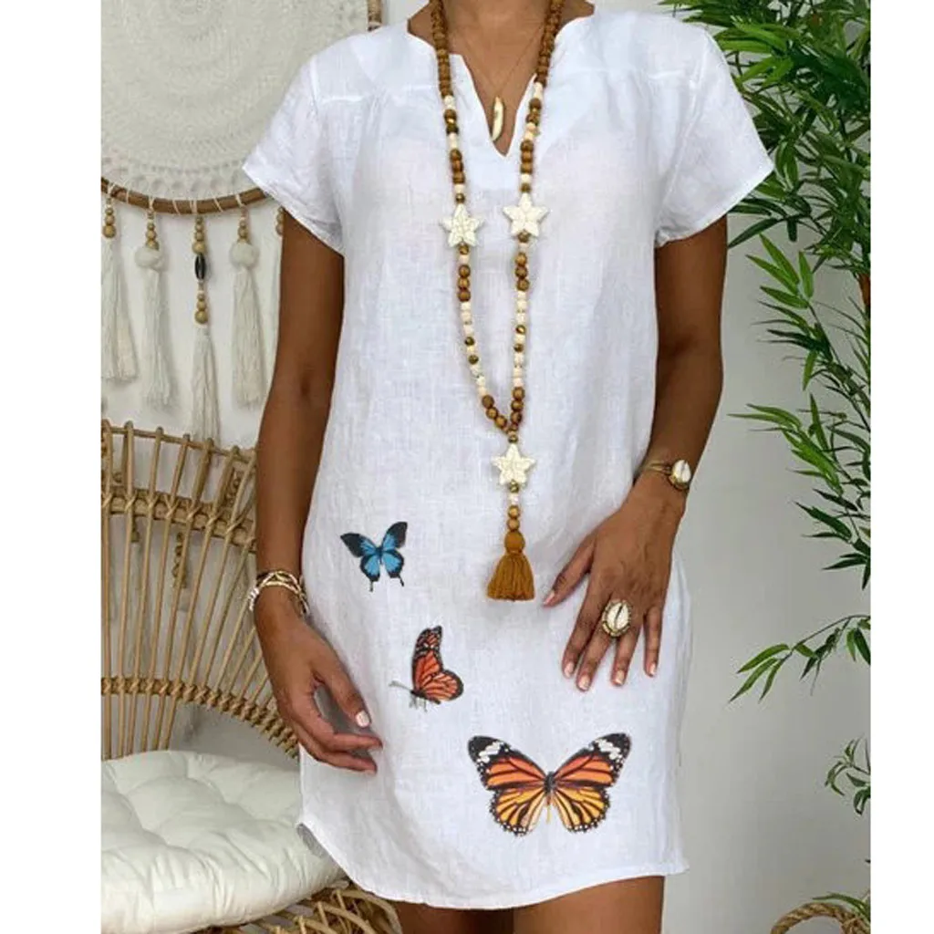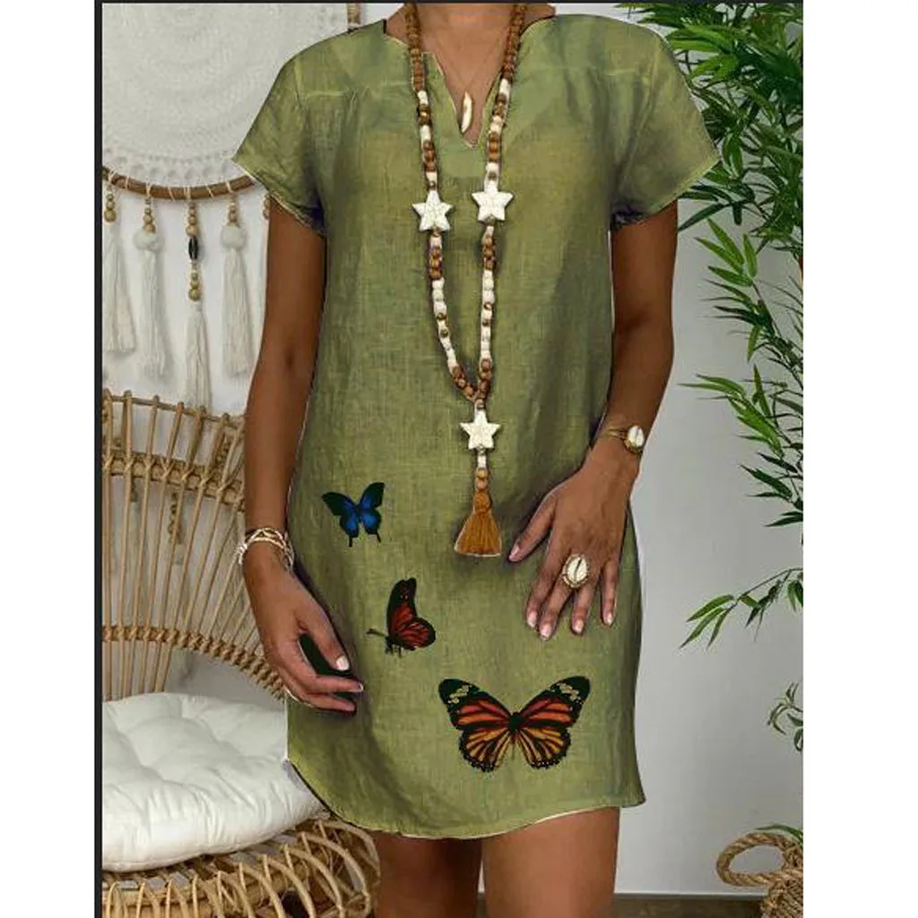Женское платье свободного покроя размера плюс с v-образным вырезом и принтом бабочки с коротким рукавом