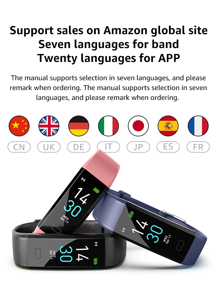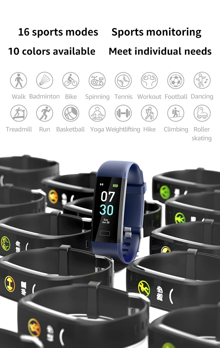 1. Мониторинг здоровья (мониторинга сна, 24-часовое испытание сердечный ритм, измерять кровяное давление, оксиметр, температура тела) 2. Мониторинг упражнений (подсчет шагов, потребление калорий, расстояние, 16 режимов упражнений, запись GPS трека) 3. Другие функции (пользовательский циферблат, напоминание о звонках, напоминание о питье, напоминание о сидячем положении, напоминание о SMS, Женское здоровье, напоминание о будильнике, удаленная камера и т. д.) 4. Программное обеспечение новости push (Facebook, Twitter, line, WeChat и т. Д.) 5. Браслет поддерживает отображение китайского, английского, японского, немецкого, итальянского, французского и испанского языков. Приложение поддерживает языки в десятках стран и регионов по всему миру.