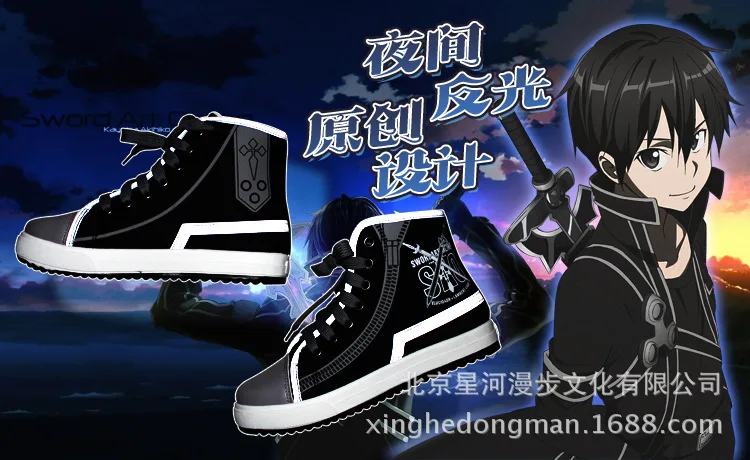 Kirigaya Kazuto меч для косплея, художественная обувь для косплея онлайн, обувь для костюмированной вечеринки, парусиновая модная Светоотражающая обувь для мужчин и женщин, высокое качество, аниме, для студентов