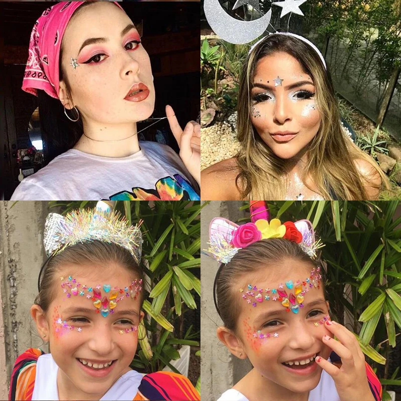 3D самоклеющиеся стразы, наклейки с кристаллами в 2 размерах, блестящие драгоценные камни, временно наклейки для Хэллоуина, праздника макияжа