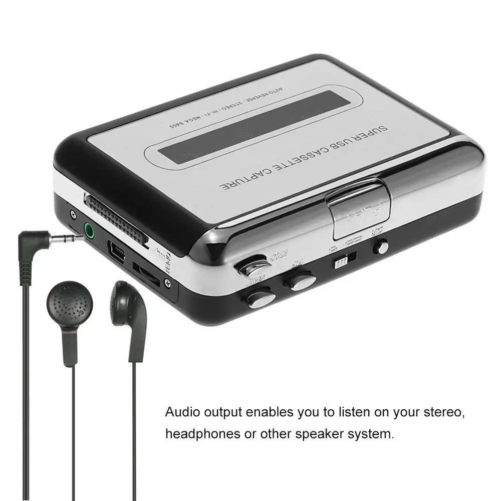 Поставляется с программным обеспечением для конвертера лент, которое будет направлять вас через трансляцию. Вы можете слушать аудиовыход на стерео, гарнитуре или другой акустической системе.