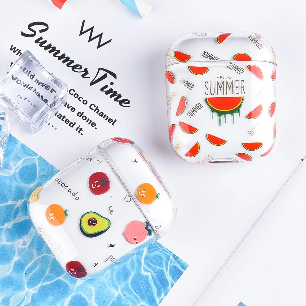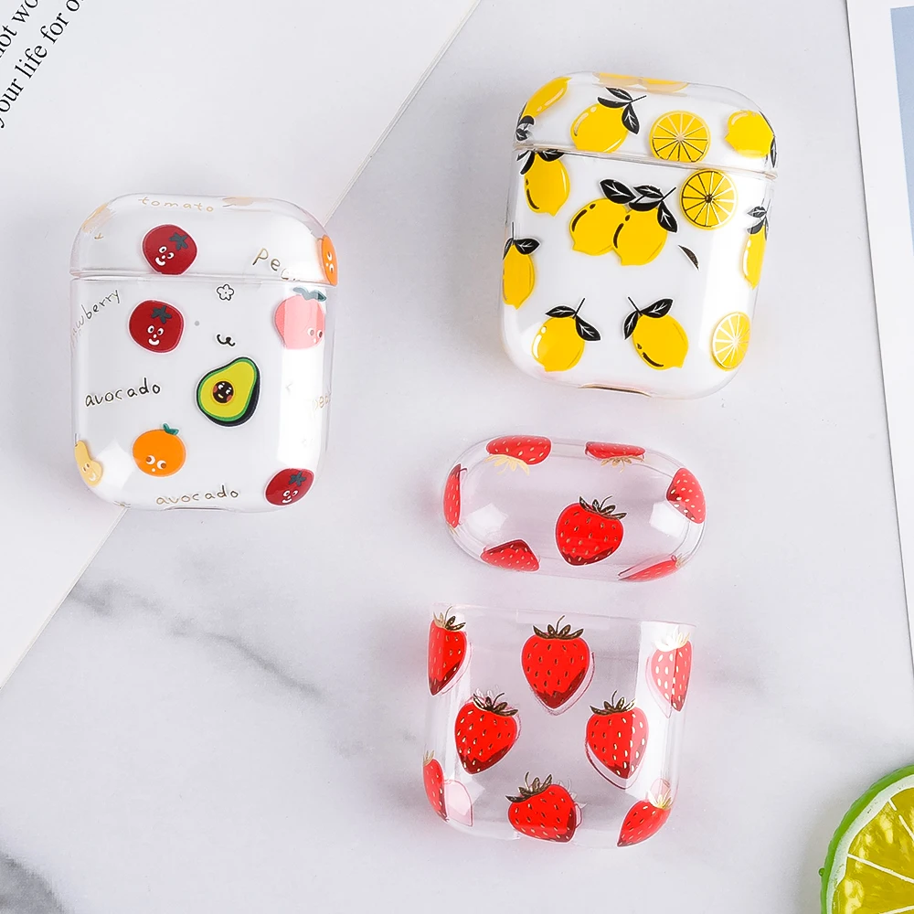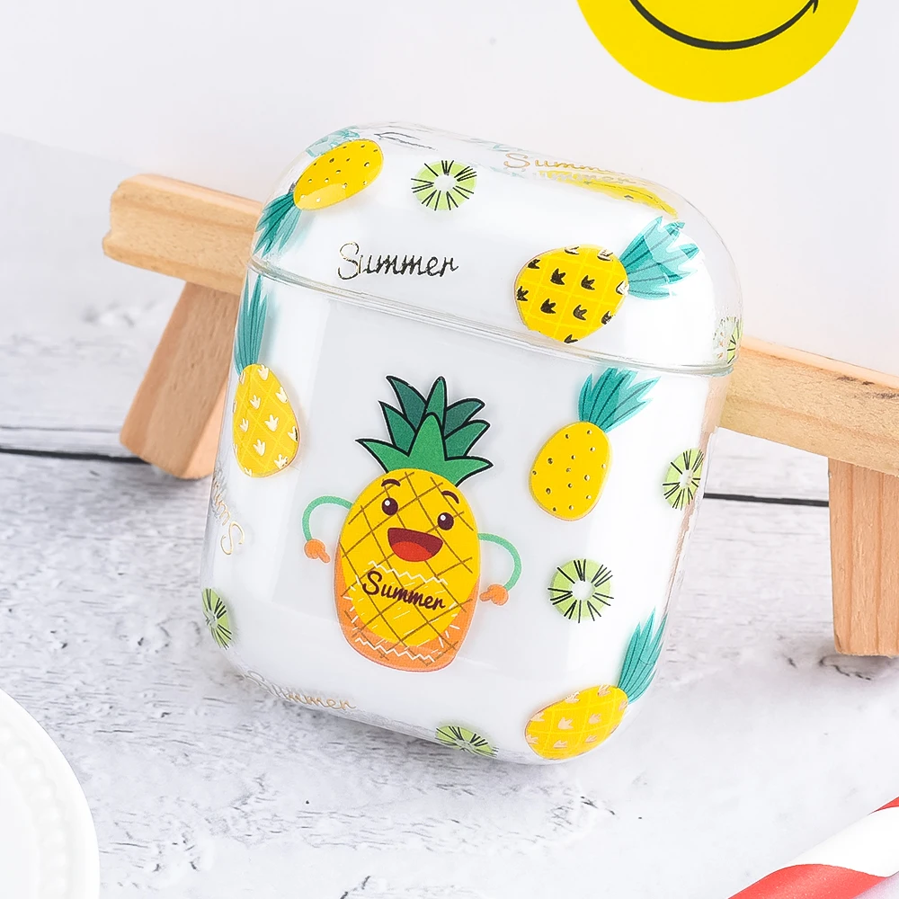 Жесткий ПК прозрачные чехлы для наушников для AirPods 1 2 зарядная коробка милый мультфильм фрукты цветок Обложка сумка для Airpods защитный чехол