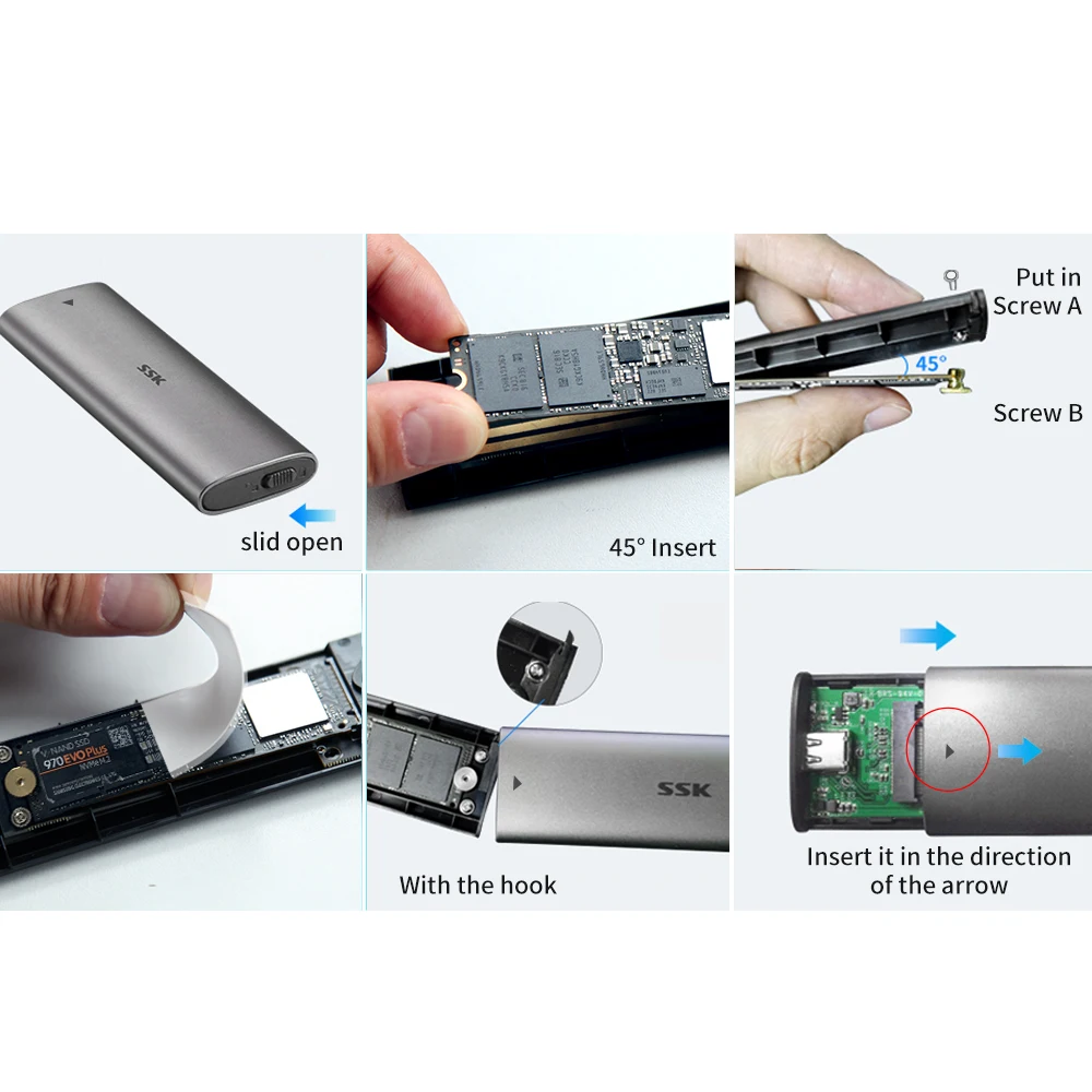 Особенности:1. USB 3,1 Type-C чрезвычайно быстрое и высокоемкое решение для передачи данных, скорость передачи данных до 10 Гбит/с для USB 3,1;2. Поддерживает NVME PCIE-based M.2 SSD;3. Простая установка и не требуется драйвер, не требуется дополнительная мощность;4. Поддержка Plug & Play и горячей замены;5. Поддержка нескольких ОС, таких как Windows, Mac OS и Linux и т. Д. Посылка включает в себя:1 х M.2 NVME PCIe к USB 3,1 Type-C SSD корпусКабель USB 3,1 Type-C-1 шт.Набор винтов-1 шт. Обратите внимание, что он поддерживает только SSD на базе NVME PCIE. Не поддерживает SSD на базе SATA.Мы протестировали наш душевая кабина с Sumsung 970 EVO NVMe SSD, фактическая скорость может достигать до 1000 МБ/с. на ж/д. Но с этой скоростью, пожалуйста, убедитесь, что порт типа C ноутбука также соответствует USB3.1 Gen 2(10 Гбит/с), если USB3.1 Gen 1(5 Гбит/с), тогда скорость будет только наполовину.Для совершенно нового накопителя SSD его нельзя найти, поэтому отформатируйте его перед первым использованием. Пожалуйста, отформатируйте его в соответствии с типом, который поддерживает Windows и Mac. Следуйте шагу, чтобы найти совершенно новый Накопитель ssd:1. Используйте свой mo с правой клавишей, чтобы нажать кнопку «компьютер», она покажет выпадающее меню;2. Используйте левую клавишу для нажатия кнопки «управление компьютером»;3. Используйте левую клавишу для нажатия кнопки "Управление диском";4. После поиска совершенно нового накопителя ssd, пожалуйста, отформатируйте его и сделайте раздел. Затем вы можете найти дискОбычно.