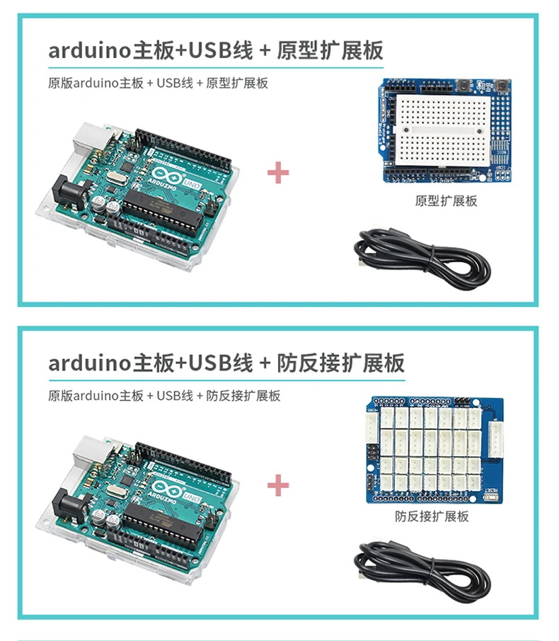 Тип 3: материнская плата arduino + USB кабель + плата расширения прототипа