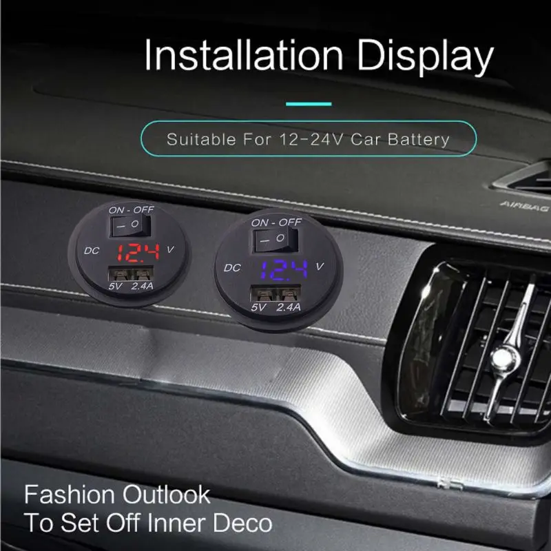 Зарядное устройство USB с вольтметром, в режиме реального времени показывает напряжение автомобильного аккумулятора.