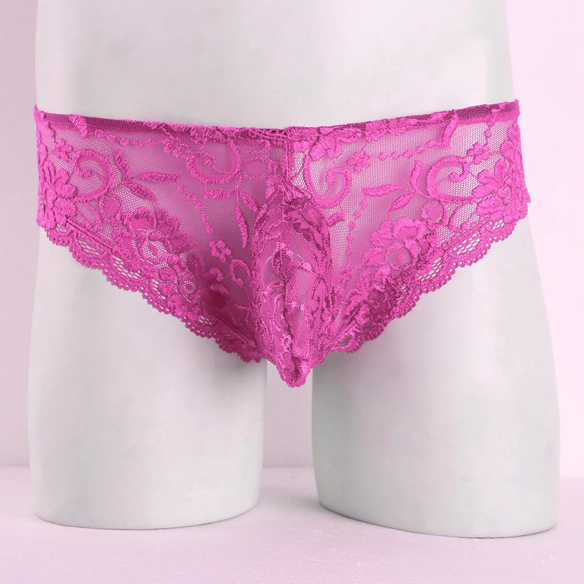 Эластичный пояс и низкая посадка, спереди выпуклый мешочек.