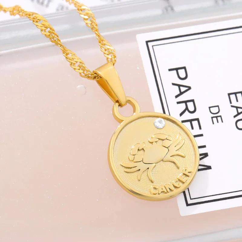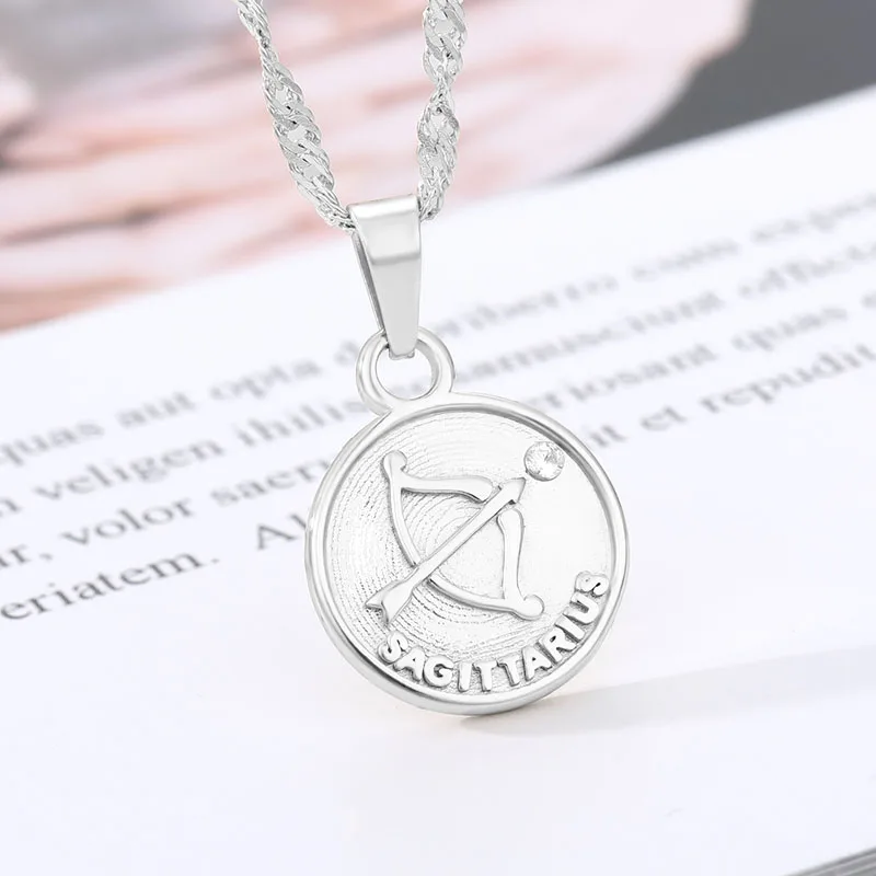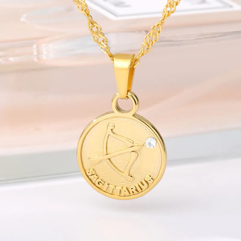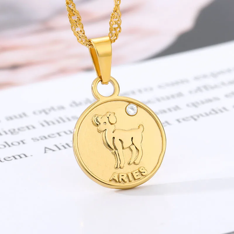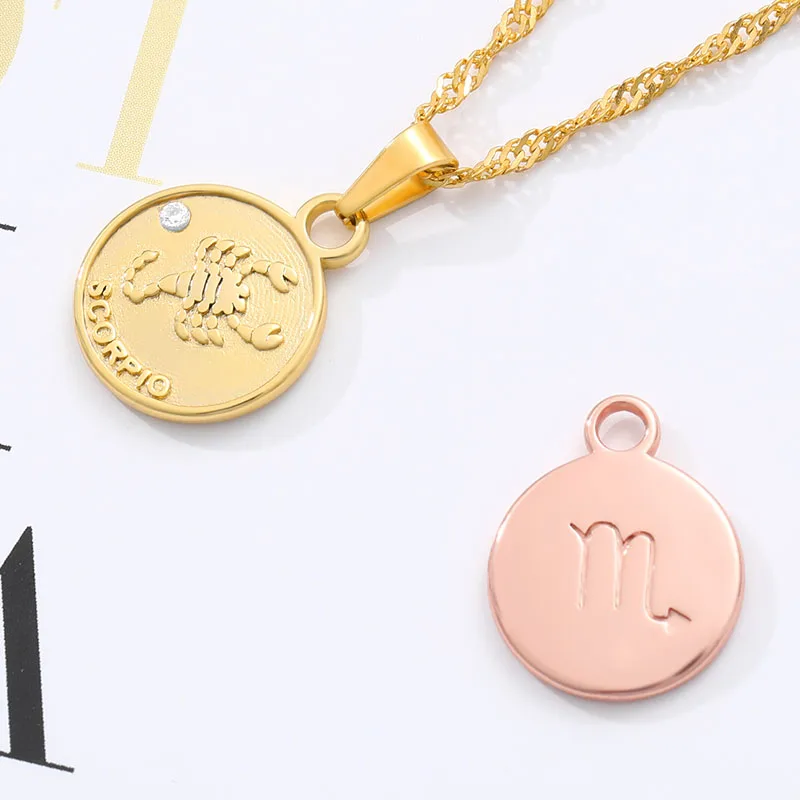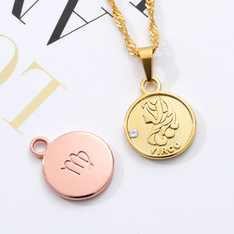 Прямая поставка, индивидуальное ожерелье с подвеской в виде монеты двенадцати созвездий, Женская цепочка до ключицы, Ретро Круглый Логотип Лео, Знаки зодиака