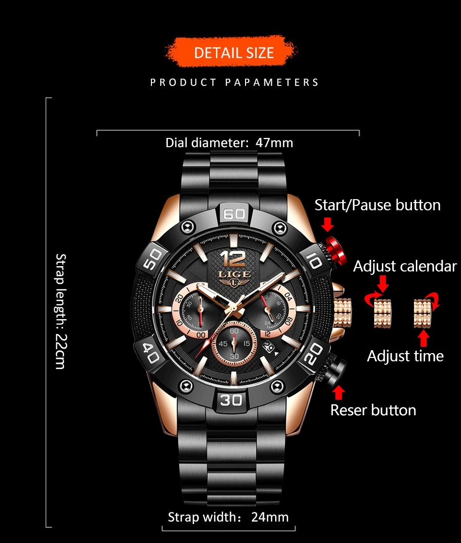 Импортный кварцевый механизм и аккумулятор высокого качества: обеспечивает точное время удержания, длительный срок службы батареи, часы будут использоваться более 2 лет.