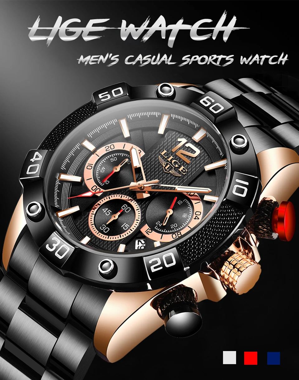 Многофункциональные часы с функцией секундомера; Три отдельных циферблата для отслеживания минут и 1/1000 секунд; Хронограф; Окошко даты;