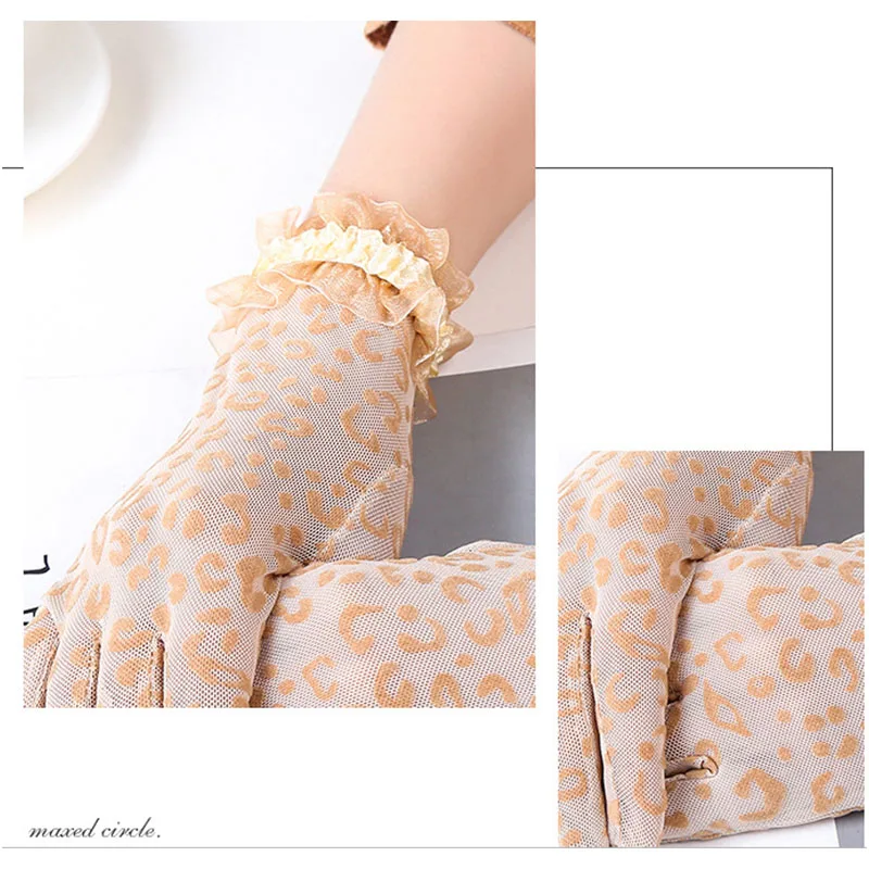 1 пара, новые модные перчатки, сексуальные леопардовые женские кружевные солнцезащитные УФ-защитные перчатки для вождения, женские сетчатые короткие тонкие перчатки