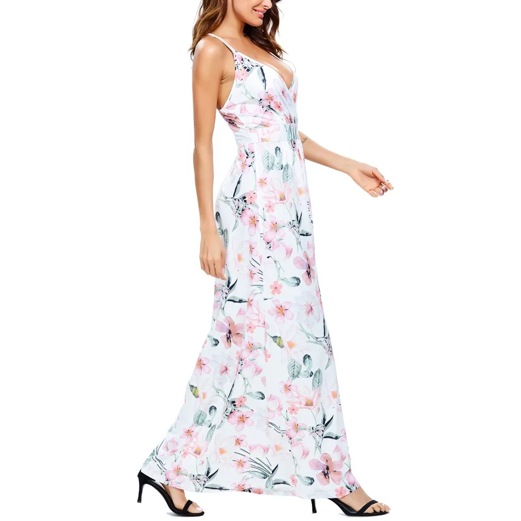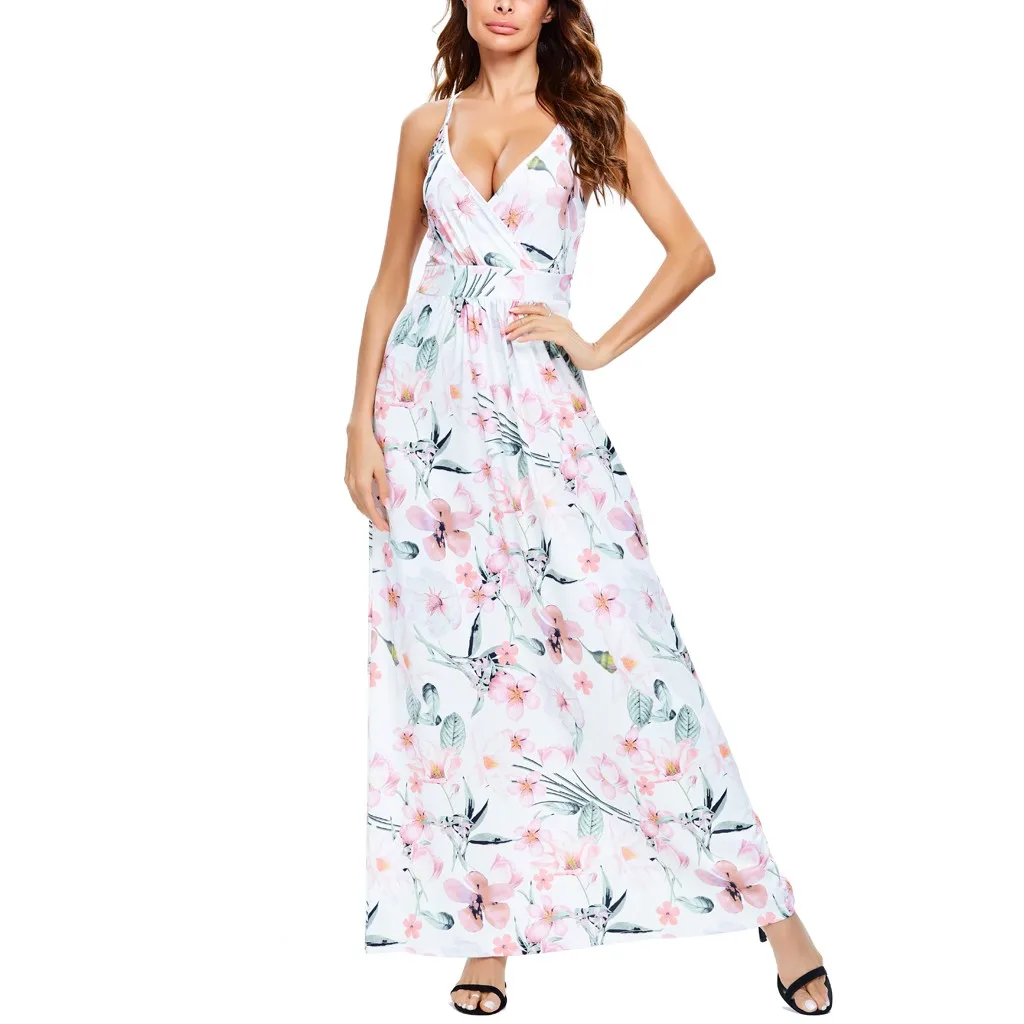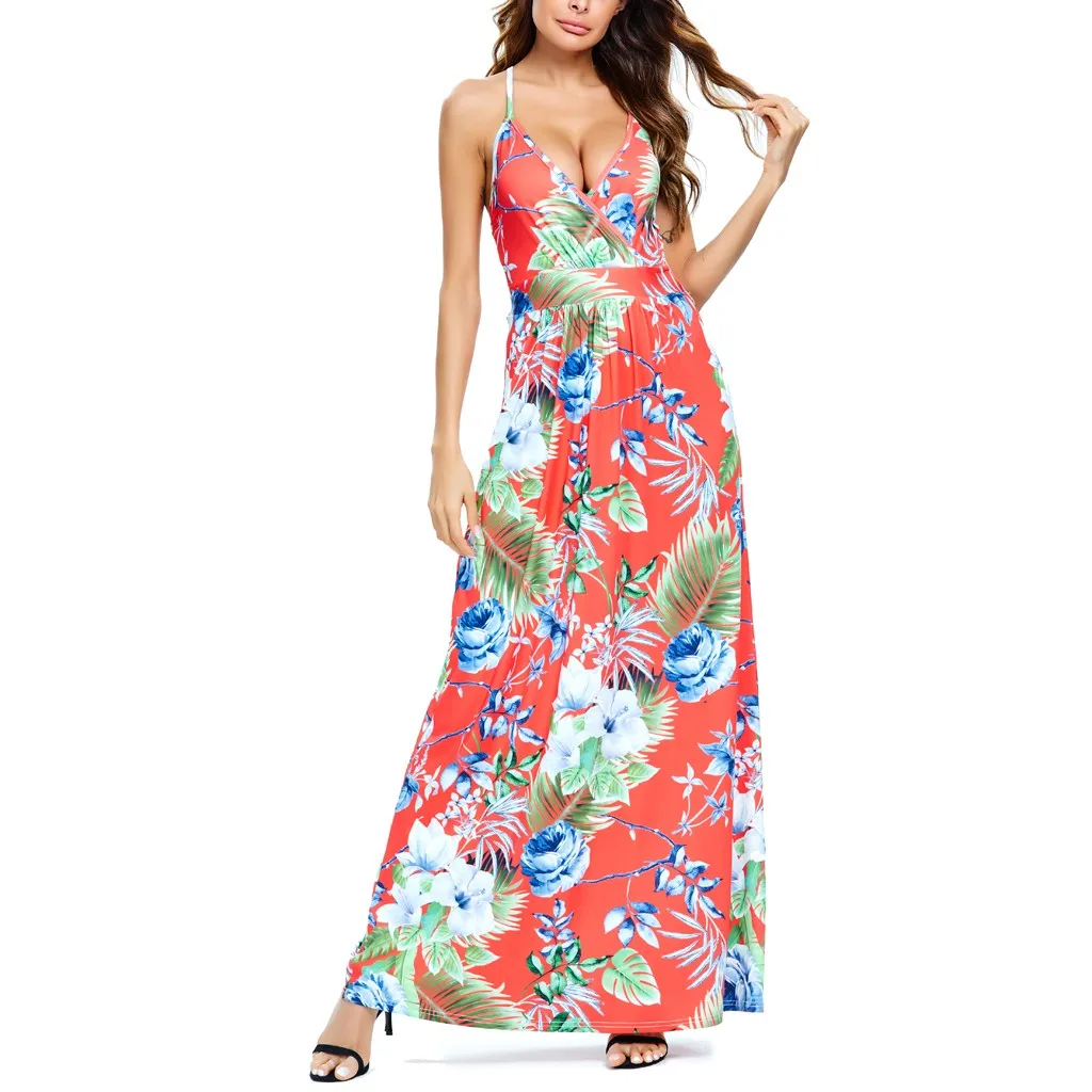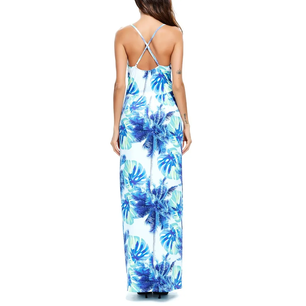 Сексуальное женское платье с v-образным вырезом, без рукавов, с принтом красителя, Повседневные Вечерние пляжные длинные платья