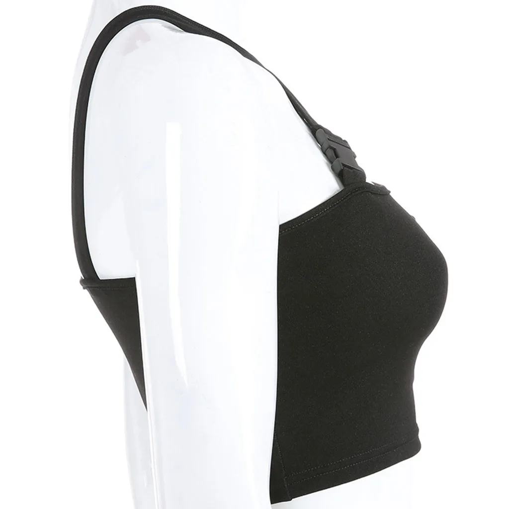 Женский топ на бретелях, сексуальный светоотражающий Топ без рукавов с пряжкой