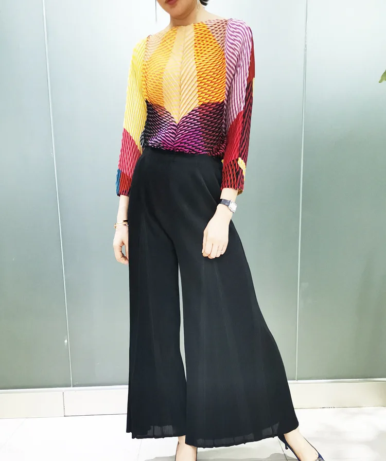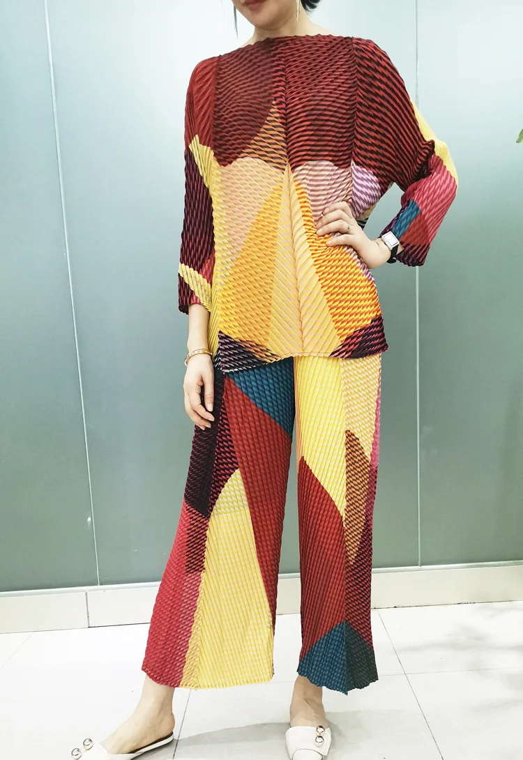 Этот брючный костюм изготовлен из большой стрейчевой плиссированной ткани miyake и подходит для женского веса 45-75 кг.