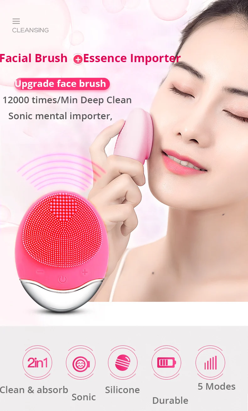 Электрическая силиконовая щетка для лица, мягкая щетка для чистки лица, звуковая вибрация, устройство для очистки лица, Индуктивная перезаряжаемая, 3 цвета