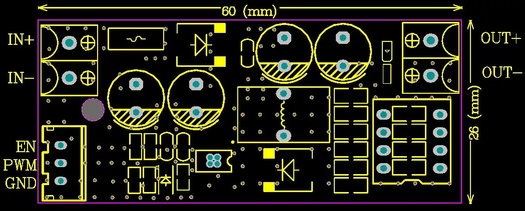 Моднявка = ckeditor Введение модуля питания постоянного тока Buck Во-первых, функция модуля 1. Высокое напряжение на входе, высокая мощность, высокая эффективность, высокая точность постоянного тока, высокая эффективность, низкая пульсация; 2. Три основные функции: защита от перегрузки по току, защита от перегрева и защита от короткого замыкания на выходе; 3. Может использоваться в качестве мощного светодиодный модуля постоянного тока, с интерфейсом затемнения PWM. Во-вторых, параметры модуля 1. Входное напряжение: 6-80 в 2. Выходное напряжение: 3-75 в 3. Выходной ток: заводская настройка составляет 400 мА (код циферблата 100 мА/бит), максимальный-800 мА. 4. Выходная мощность: максимум 45 Вт 5. Рабочая температура: -40 ~ + 85 градусов 6. Рабочая частота: 450 кГц 7. Эффективность преобразования: до 98% 8. Входная защита от обратного хода 9. Способ подключения: терминал (по умолчанию) или другой 10. Размер модуля: длина 30 мм ширина 25 мм высота 12 мм В-третьих, схема подключения