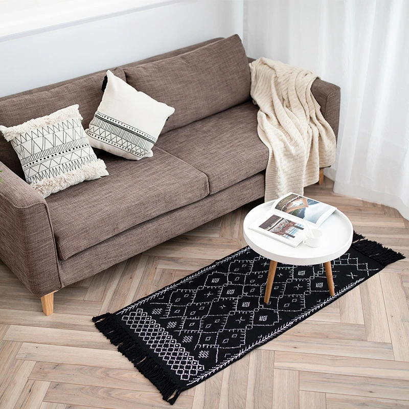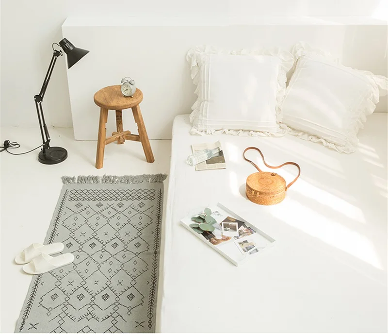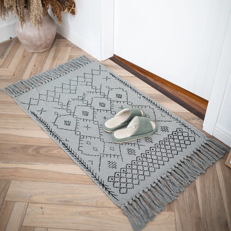 Индийский стиль бохо, коврики с ручными узелками, кисточками, коврик для ног, ковер для спальни, гостиной, дивана, небольшая площадь, коврик с принтом, хлопковая подушка