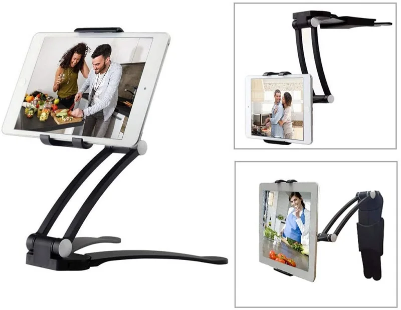 [Стабильный и прочный]: держатель планшета изготовлен из алюминиевого сплава, который сгибается и не легко сломать. Основание кронштейна находится в форме внешней восьмерки, которая прочно поддерживается для предотвращения спада. Кронштейн оснащен нескользящей Силиконовой прокладкой для защиты рабочего стола и мобильный телефон. [Вращение на 360 ° и регулируемый угол]: несколько гибких соединений и вращающаяся на 360 ° Колыбель позволяет настроить на идеальный вид без рук в портретном или ландшафтном режиме. Используйте прилагаемые шестигранные кнопки в форме буквы «L» для регулировки и затягивания соединений для регулировки гибких соединений на 180 °. Регулировка стопы на 90 ° стабильно поддерживает ваши цифровые устройства. [2 в 1 Подставка для кухонного планшета]: цифровой держатель с несколькими соединениями имеет настенное основание, чтобы держать его на стене. Вы можете установить цифровой многофункциональный держатель на стене, под кухонным шкафом или стоя на вашем столе. Цифровой многофункциональный держатель освобождает ваши руки, чтобы следовать рецептам, учебникам или читать электронные книги и смотреть ваши любимые шоу на кухне, в офисе, спальне и ванной комнате и т. Д. [Легко установить]: уникальный дизайн стеновой подставки для планшета вмещает три режима отображения настольной стены и под шкафом для стен и под шкафом дисплеев эта подставка включает в себя две легко устанавливаемые подставки, которые просто складывают ножки и быстро вставляют внутрь установок и тейкдаунов. [Используйте в любом месте под шкафом, настольной подставкой, настенным креплением]: монтируемая столешница освобождает ваши руки, чтобы следовать рецептам, учебникам или читать электронные книги и смотреть ваши любимые шоу на кухне, офис, спальня и ванная комната и т. Д.