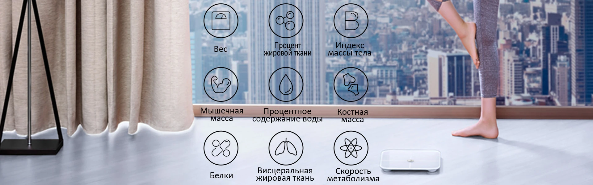 Высокоточный чип BIA, 4 датчика давления и регулируемые ножки обеспечивают удобство и точность измерений.