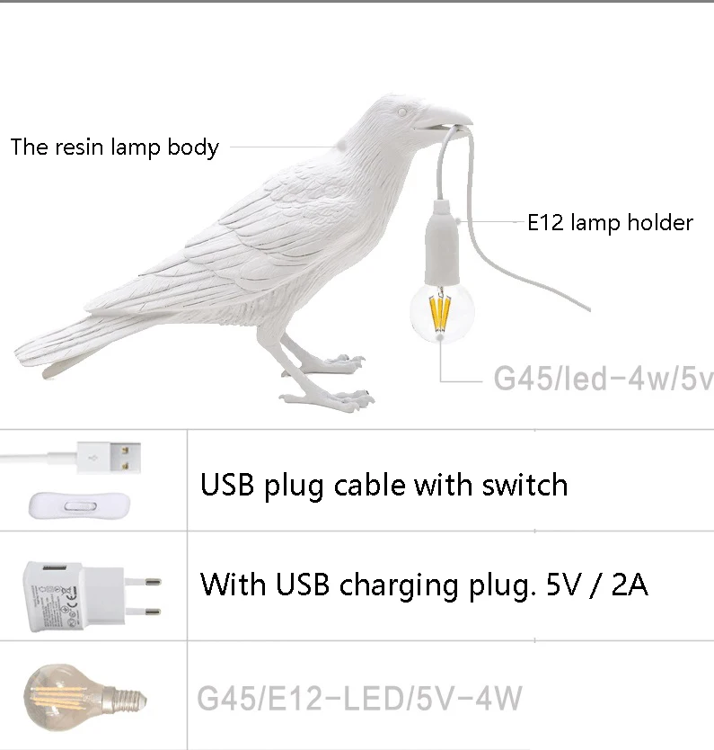 Гарантия 2 года! Если продукт не поврежден искусственно, пожалуйста, отправьте его обратно. Мы проверим и подтвердим, поврежден ли продукт естественным образом. Наша продукция гарантирована на два года. Параметры продукта Мощность: 5 Вт и ниже С или без светильник: Да Тип переключателя: кнопочный переключатель Материал корпуса лампы: смола Ремесло: резьба по дереву Тип источника: светодиодный светильник Напряжение: 110-240 В Цветовая классификация: вид, стоя, сидя благоприятная птица, черный/белый
