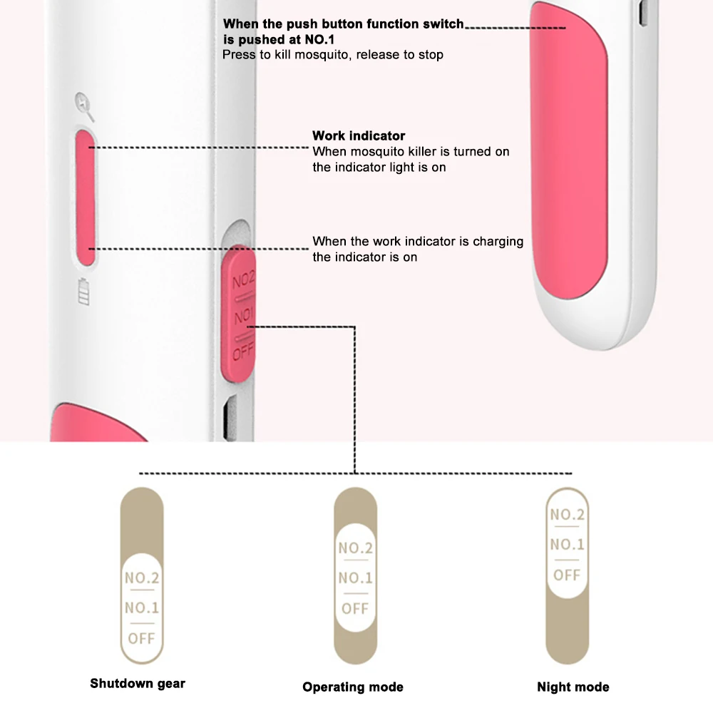Высокое напряжение и мощность, способные выдавать мощный Электрический удар, устраняющий мухи, комаров и других летающих насекомых.