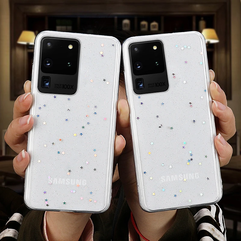 Блестящий Прозрачный мягкий силиконовый чехол со звездами для Samsung Galaxy S20 Ultra Note 10 S10 Plus A10s A20s A20E A30 A50 A70 A20