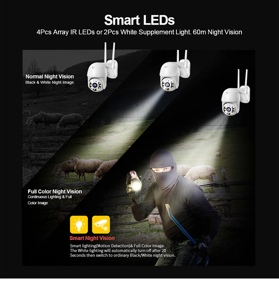 4. Защита от атмосферных воздействий, как наружная камера, кроме водонепроницаемого уровня IP 66, она работает между-10 ℃ ~ 50 ℃ окружающей среды.