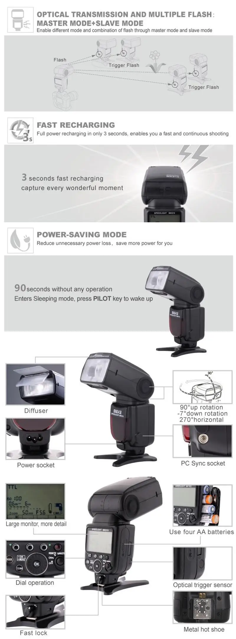 Meike MK-910 MK910 TTL 1/8000s HSS, с поддержкой синхронизации, в качестве основной и ведомая вспышка speedlite для Nikon SB-910 SB-900 D7100 D800 D5500 D750 цифрового однообъективного зеркального фотоаппарата