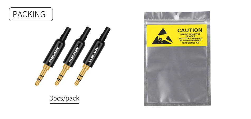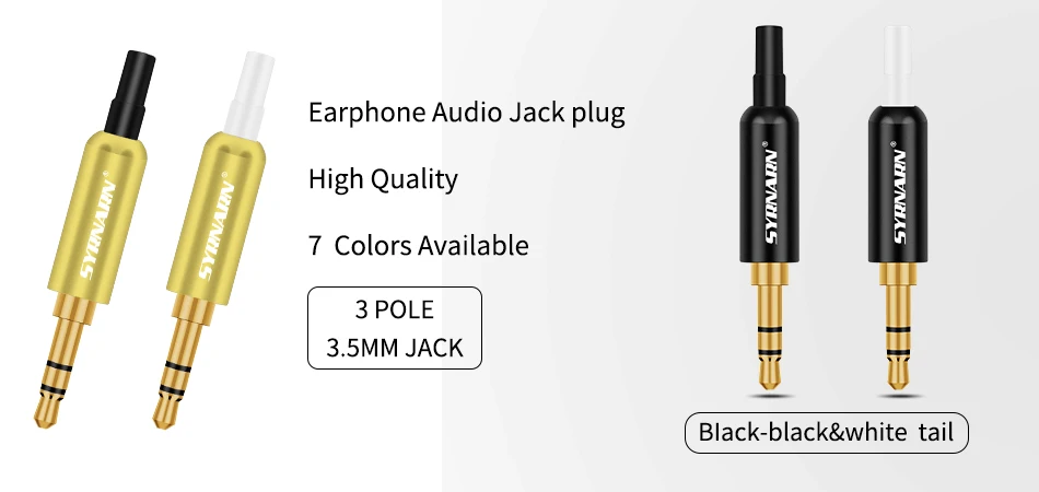 Syrnarn 3 шт. Алюминий Jack 3,5 наушники-затычки, удлиненное сзади, штекерные зажимы 3,5 мм 3 полюс стерео штекер позолоченный разъем провода