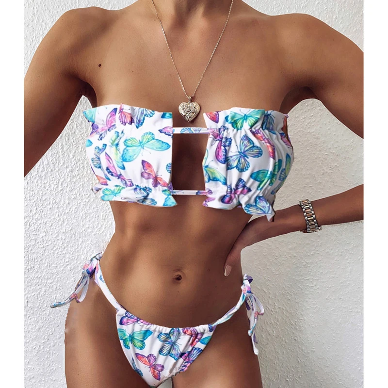Женский прозрачный комплект бикини с сеткой бразильское Прозрачное Бикини для