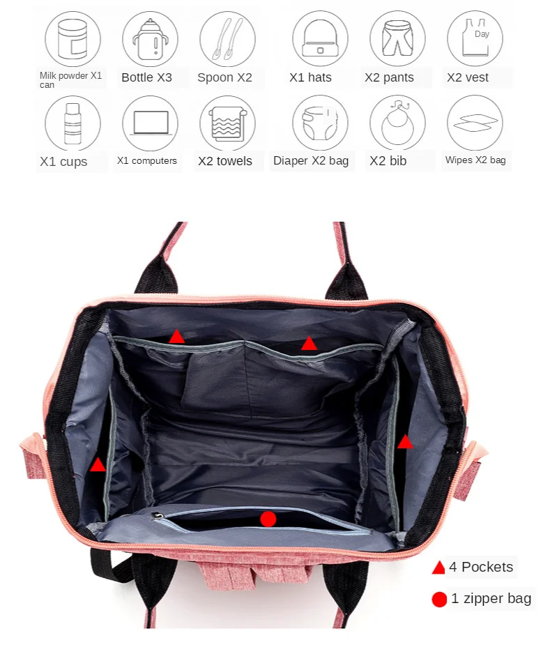 1. Большая вместимость-большое основное отделение, отдельные карманы для хранения включают изолированные карманы и карман для влажной одежды, вы можете положить бутылки с молоком, бутылки с водой, одежду, подгузники, полотенце и т. Д. В разные Отдельные карманы.