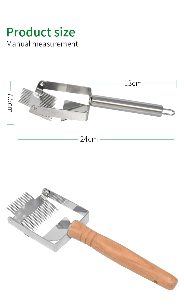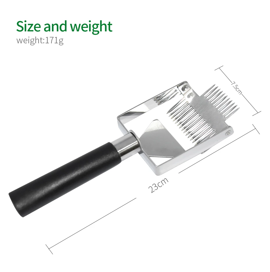 1. Изготовлен из высококачественной резиновой древесины или эвкалипта, гладкий и не повредит руки. Вилка изготовлена из высококачественной нержавеющей стали 304, поэтому она острая, быстрая и устойчивая к ржавчине. 2. Инновационная режущая медовая вилка для резки пчелиного воска и очистки селезенки гнезда. Изготовлено из высококачественной нержавеющей стали 304, выбранные материалы долговечны и просты в использовании. 3. Вырежьте медовую иглу. Вилка имеет 17 игл из нержавеющей стали, что делает селезенку более подробной, и операция Более Тщательная. 4. Скребок, тип иглы, лезвие Лопаты Скребок Тип лезвия большой области операции тип иглы царапин и сбора пропуск. Пусть процесс соскабливания будет легче. 5. Удобная ручка. Высококачественный материал деревянной ручки, гладкий, спрей лак, не повреждает руку. Удобный захват больше подходит для ладони и резки меда будет более трудоемким. Его можно повесить.