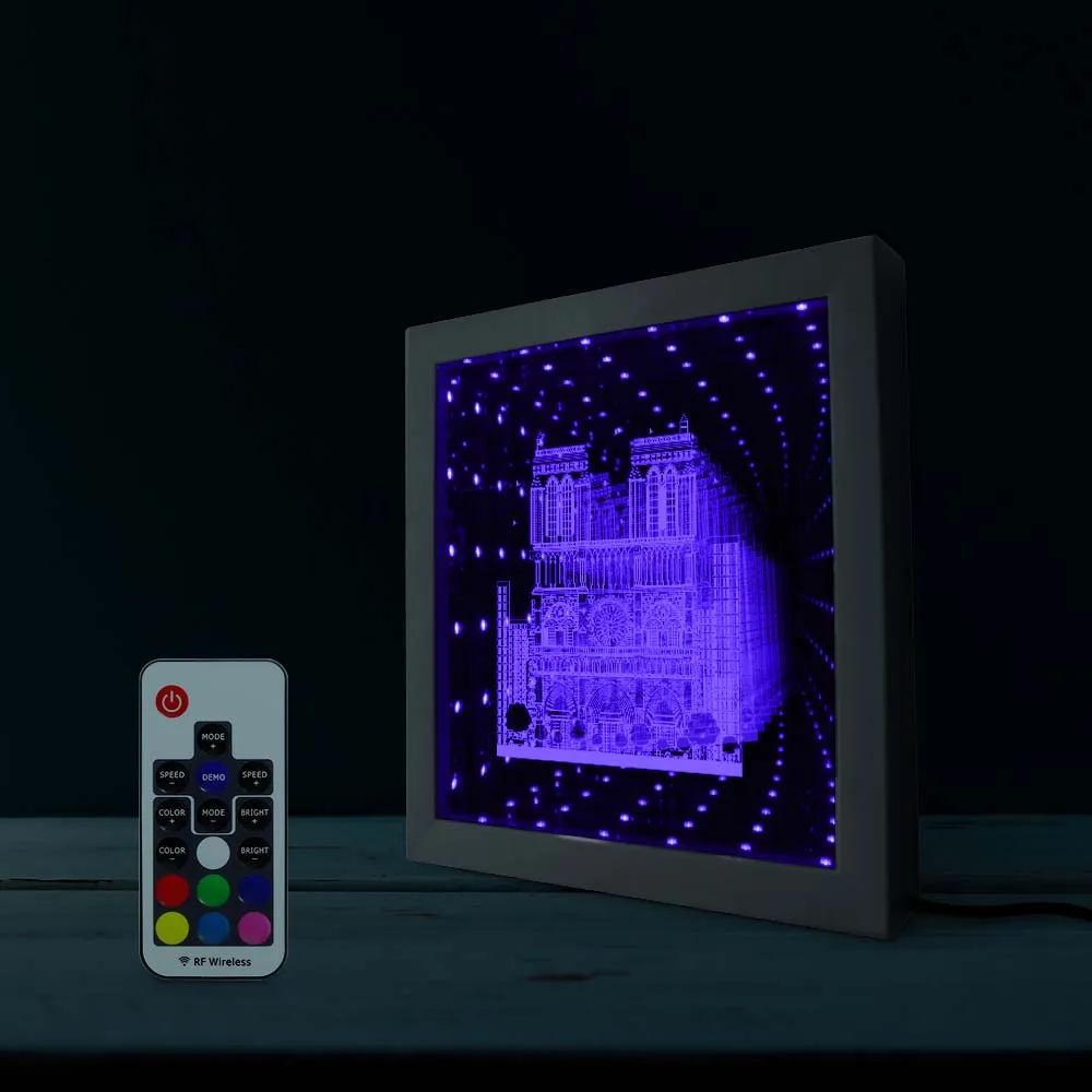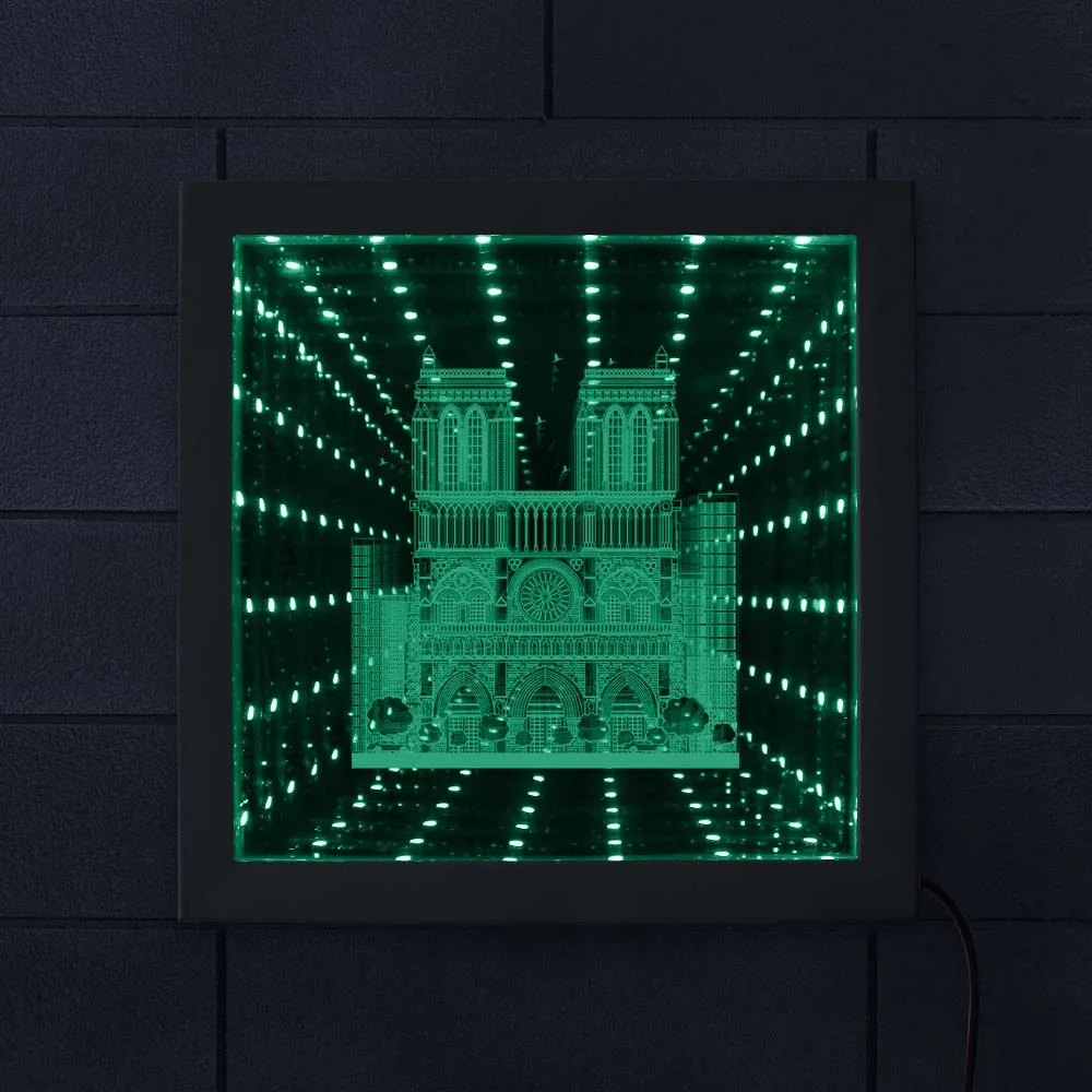 Создавая потрясающую оптическую иллюзию, зеркальная рамка Infinity использует умный светильник и зеркала, чтобы, похоже, сгибать светильник в бесконечное пространство, делая это умным предметом настенного искусства, а также идеальным подарком на светильник. Рамка для зеркала Infinity может быть либо настенной, либо левой отдельно стоящей.