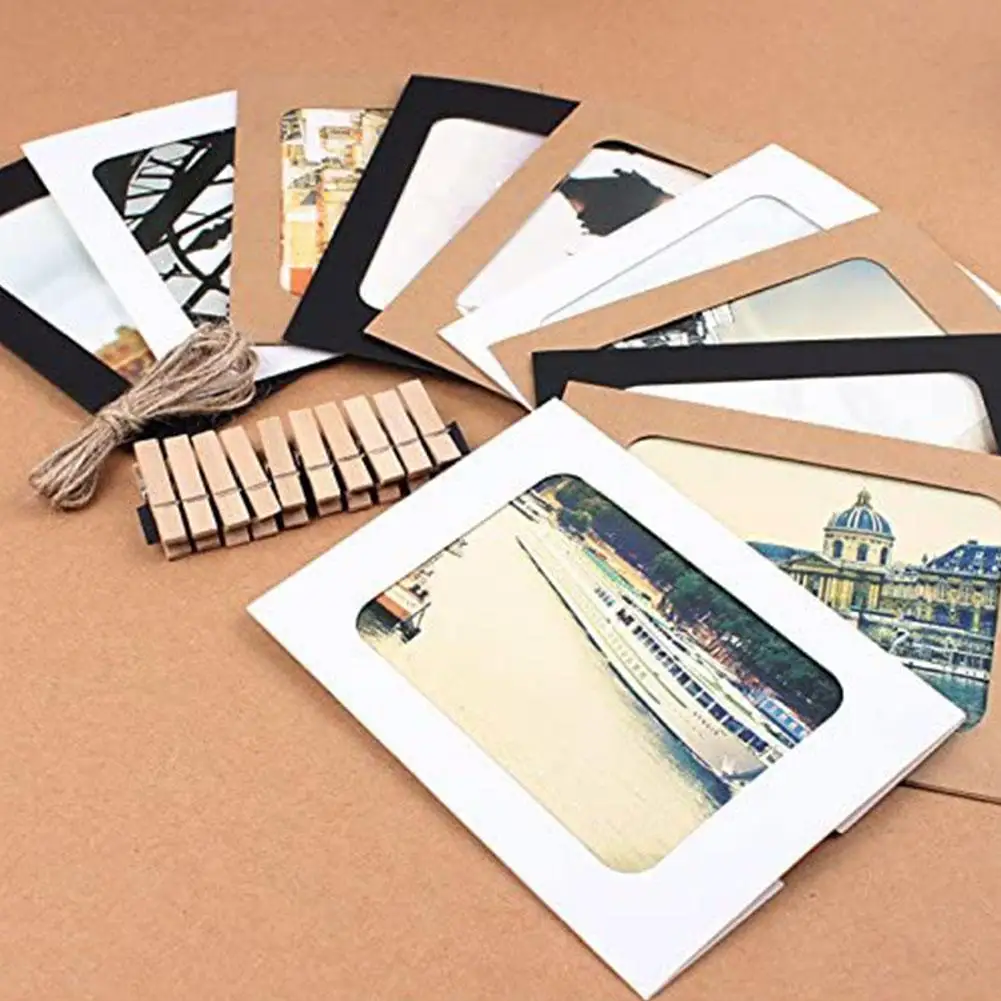 Описание: ретро крафт-бумага для фотосъемки комбинация фоторамки Количество: 1 комплект (в том числе 10 фоторамок, 10 клипов, 1 пеньковая веревка) Размер: 6 дюймов, 7 дюймов 10 штук настенной фотобумаги фоторамки с веревкой клип. Цвет: черный, белый, коричневый, смешанные цвета s (Примечание: смешанные цвета s включают 3 черных, 3 белых и 4 коричневых) Применение: подвесная спальня, гостиная посылка включает в себя: бумажная рамка x 1 набор (включает 10 бумажных рамок, 10 клипов, 1 пеньковый Канат)