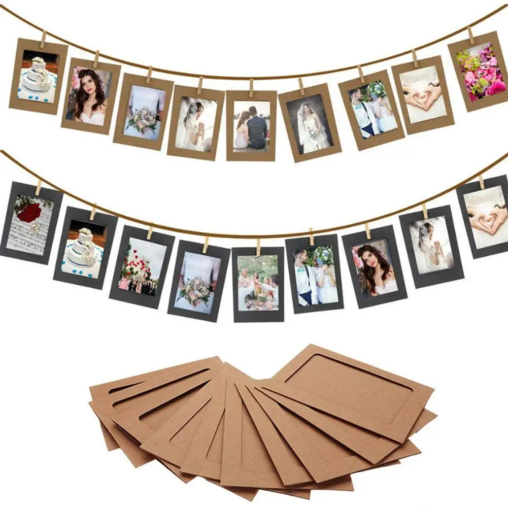10 фоторамок с зажимом пеньковая веревка Ретро воловья подвесная бумажная фоторамка комбинация