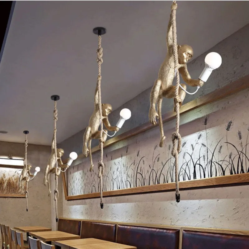 Современная смоляная лампа в форме обезьяны, подвесной светильник, золотой, черный, белый, люстра, светильник, Светильники для бара, кафе, подвесные лампы с E27 Led лампочкой