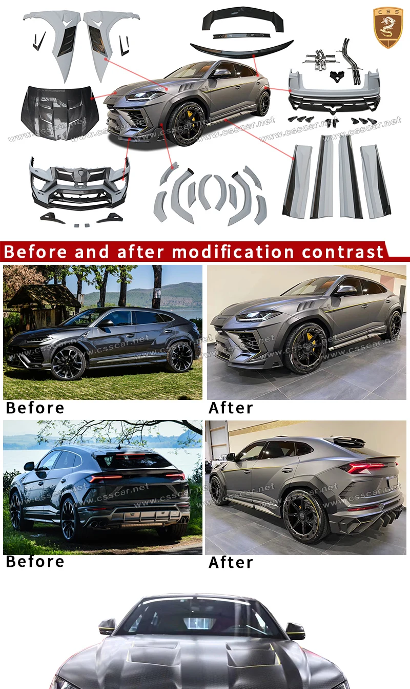 Название продукта | Сухой комплект для корпуса из углеродного волокна M, передняя часть для губ, задний бампер, диффузор, капюшон двигателя, боковая юбка, накладка на крыло, чехол для Lamborghini Urus |