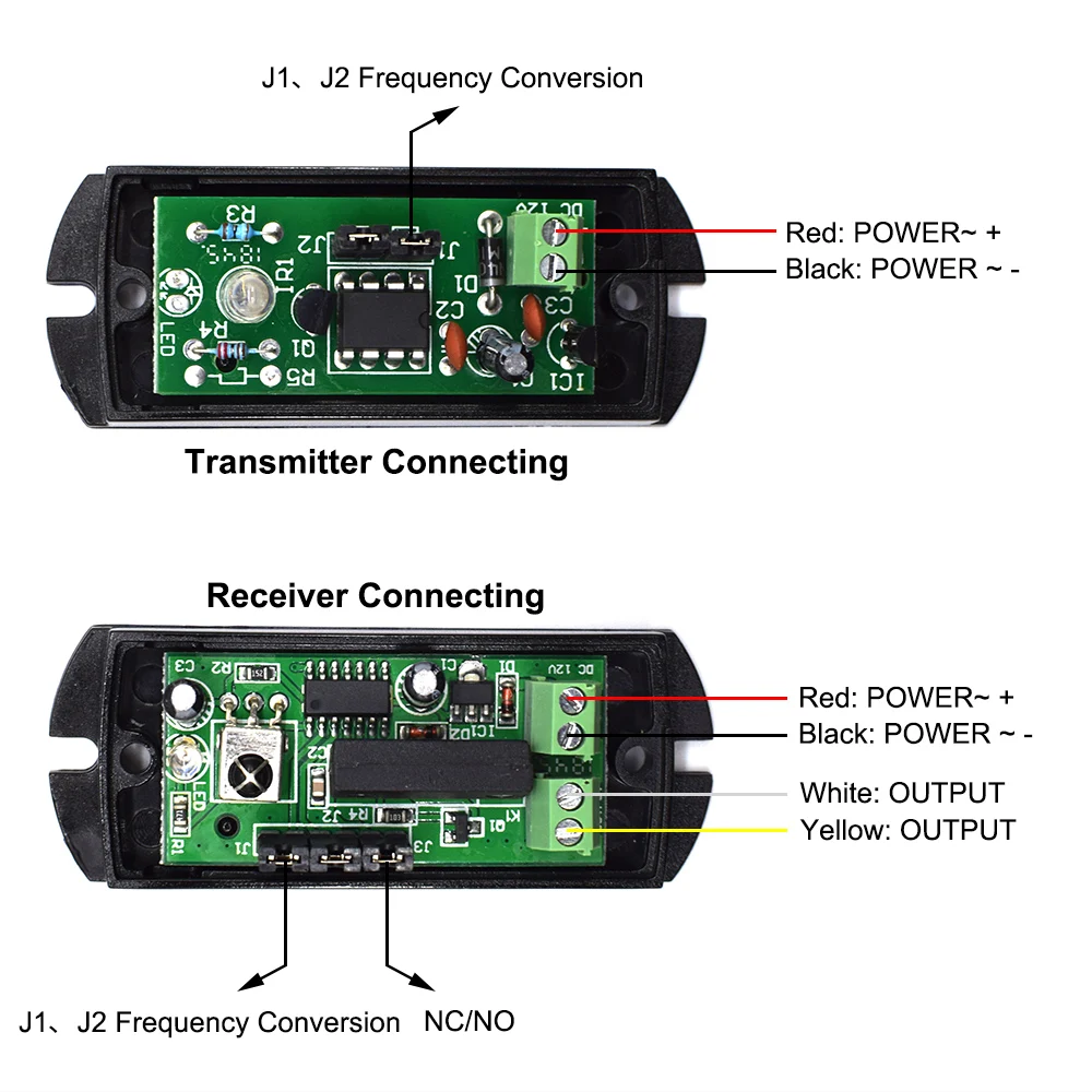 J1, J2-это преобразование частоты, передатчик и приемник, соответствующие 4 каналам. J3 нормально открыт/нормально закрыт Регулируется, когда NC state J3 включен, когда нет состояния J3 выключен.