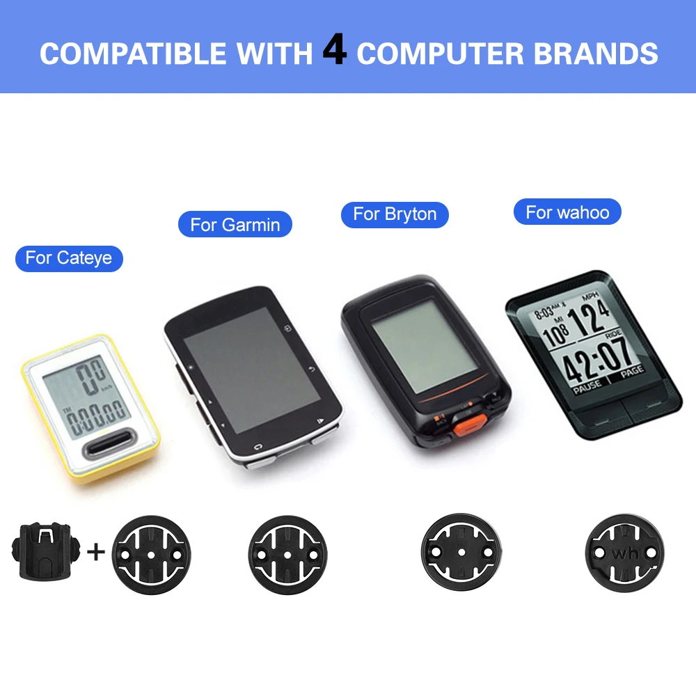 Это крепление для велосипедного компьютера регулируется, чтобы обеспечить вам удобные углы обзора. Он поставляется с 4 адаптерами для работы с различными велосипедными компьютерами.