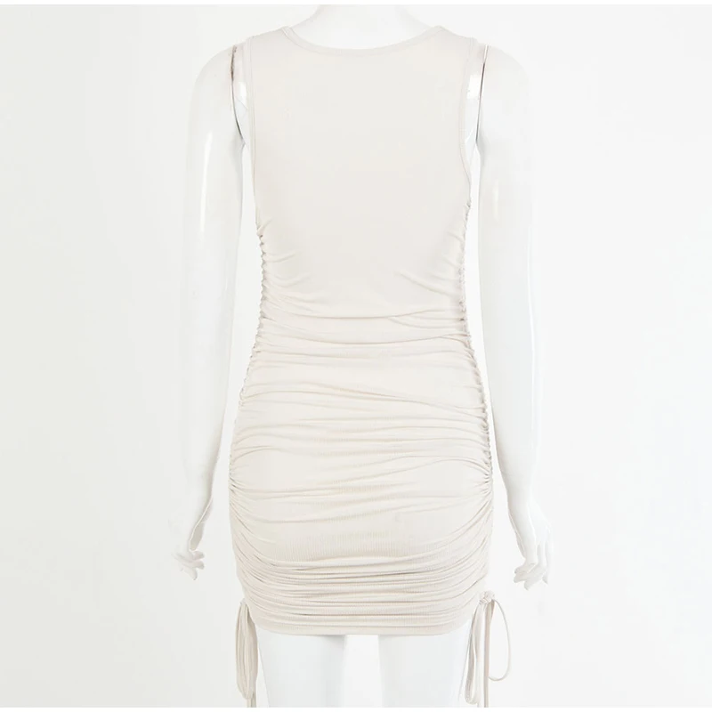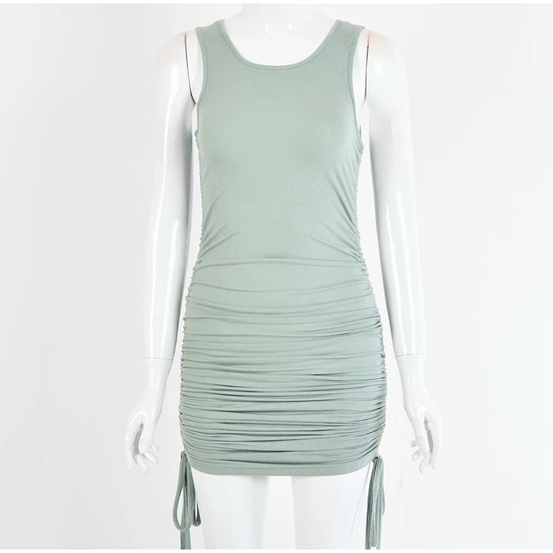 Сексуальное женское облегающее мини-платье без рукавов с рюшами на завязках, короткое платье для женщин 2020, летнее женское платье с круглым вырезом