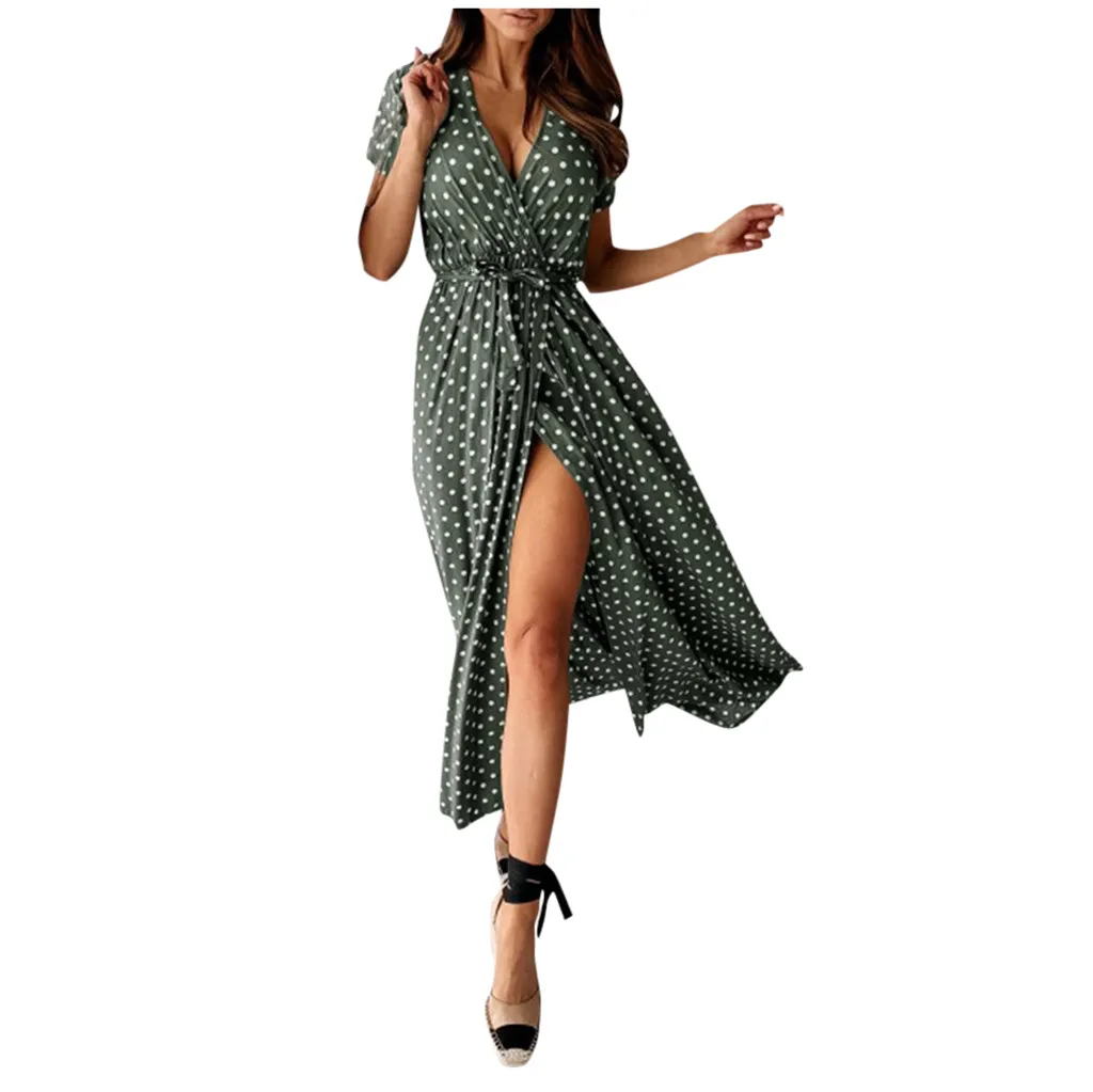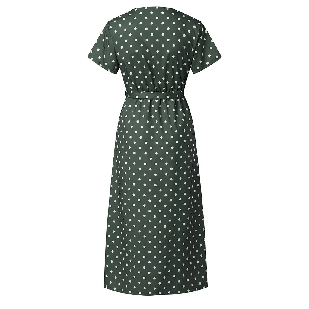 3. V-образный вырезКороткий рукав; Накидка спереди; Узор в горошек; Шнуровка, Боковое разделение. Он имеет vОчень лестно обрезается на теле,Покажите свои изгибы с шармом. ATtractive style делает вас очаровательной и сексуальной.